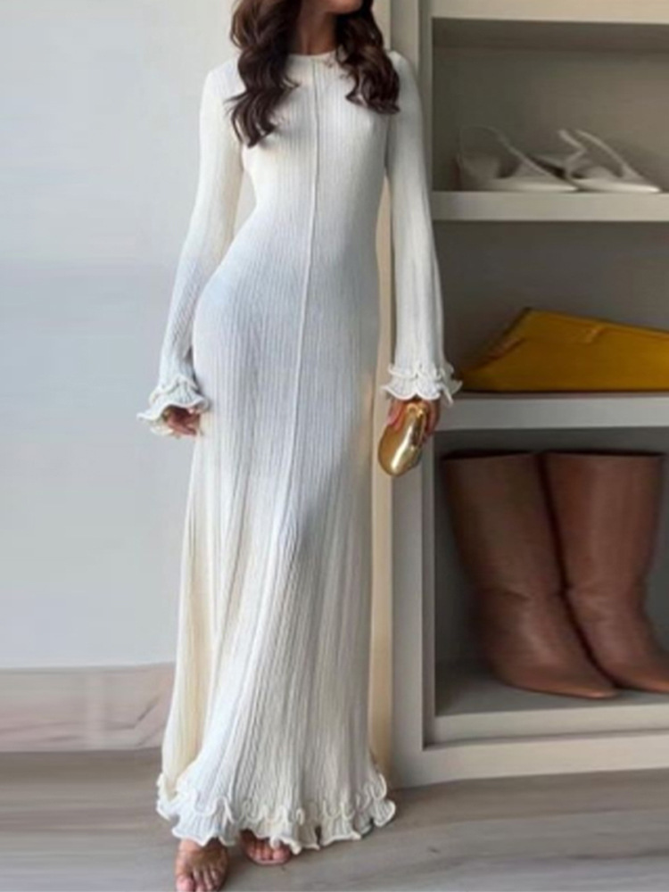 Churchf Churchf Round Neck Long Sleeve Knit Long Dress 2024 Slim High-Waisted Women's Curly Skirt