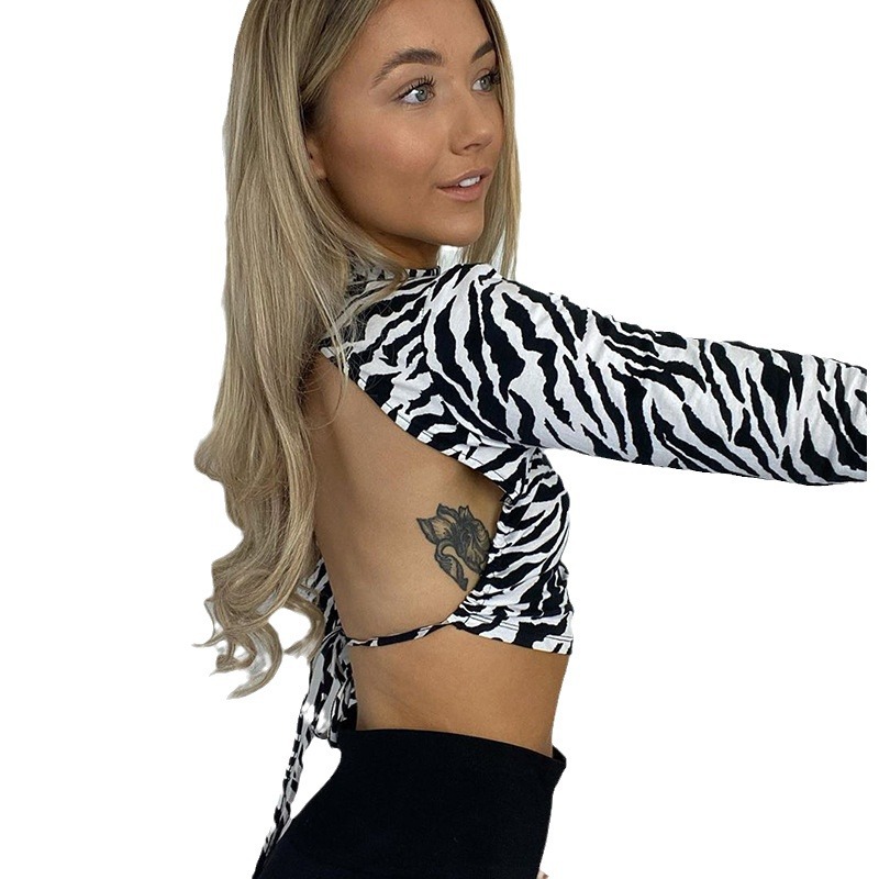 Churchf Churchf Sleeve Crop T Shirt 2024 New Sexy Back Lace Print Long Sleeve T Shirt Women