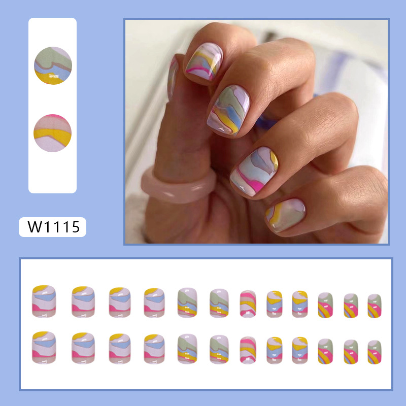 Churchf Churchf Square Fake Nail Colorful Coating Painting Wind Abstract Style Ins Wind Nail Wear Nail Finished Product