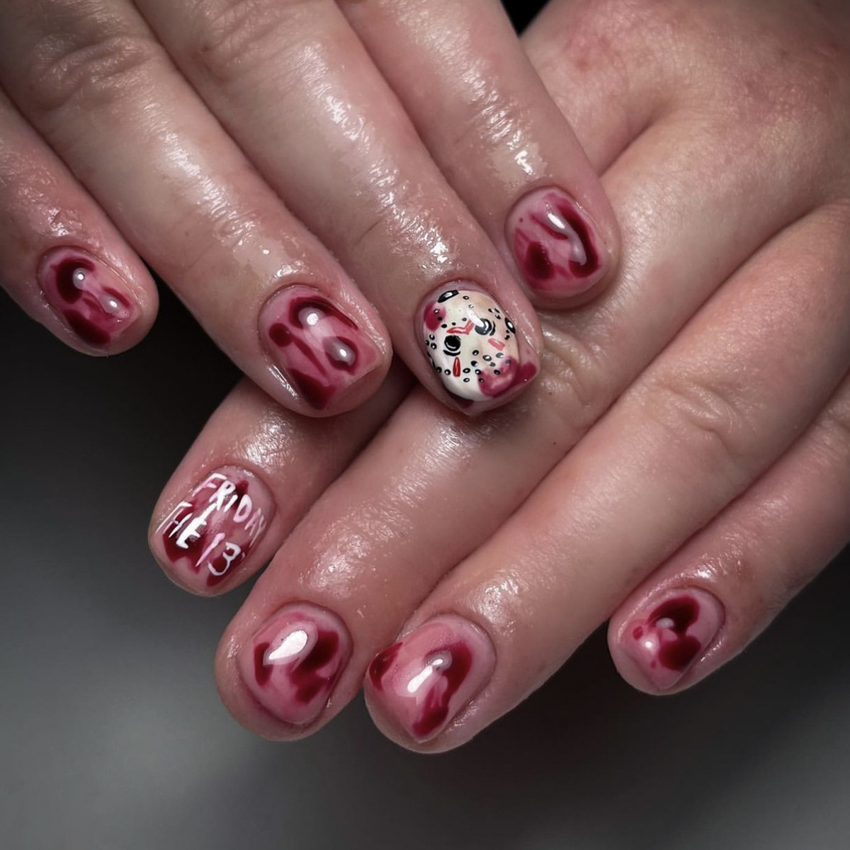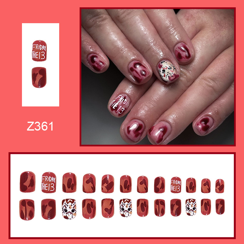 Churchf Churchf Square Red Halo Dye Halloween Fashion Show White Sweet Ins Wind Fake Nail Piece Finished Mixed Batch