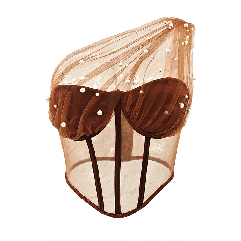 Churchf Churchf Style Tulle Lace Mesh Perspective Sexy Pure Women's Jacket Pearl Nail Fishbone Corset