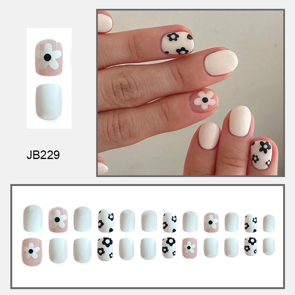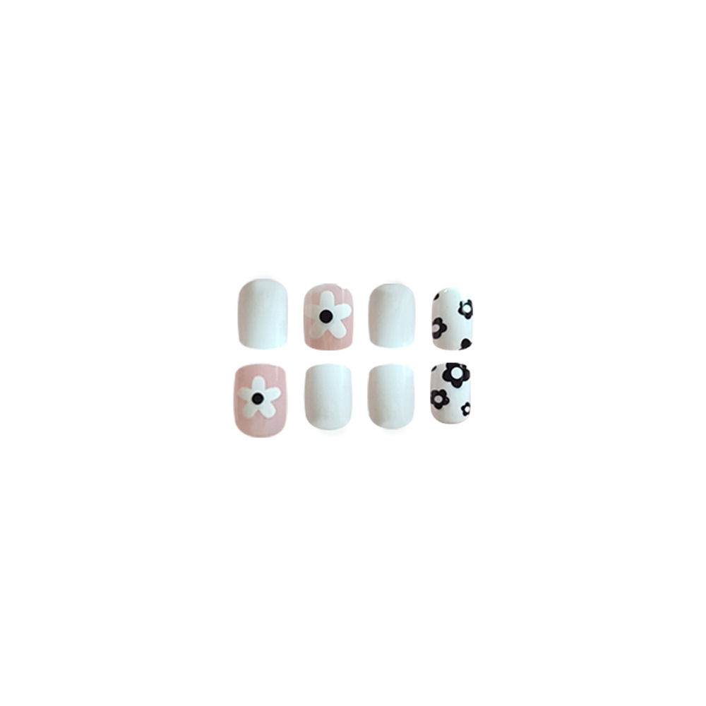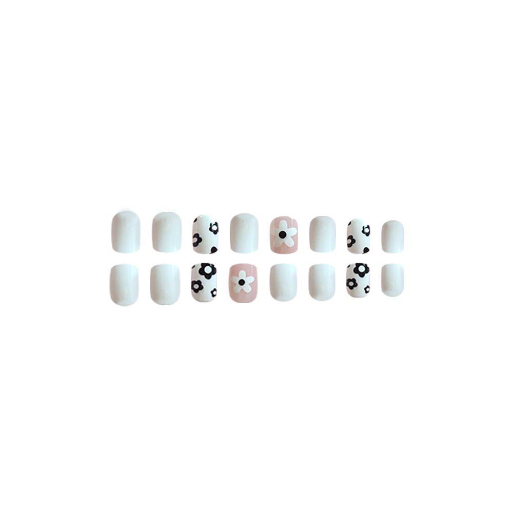 Churchf Churchf White Lovely Flowers Spring Flowers White Short European Square Nail Tablets Wearable Removable Fake Nails