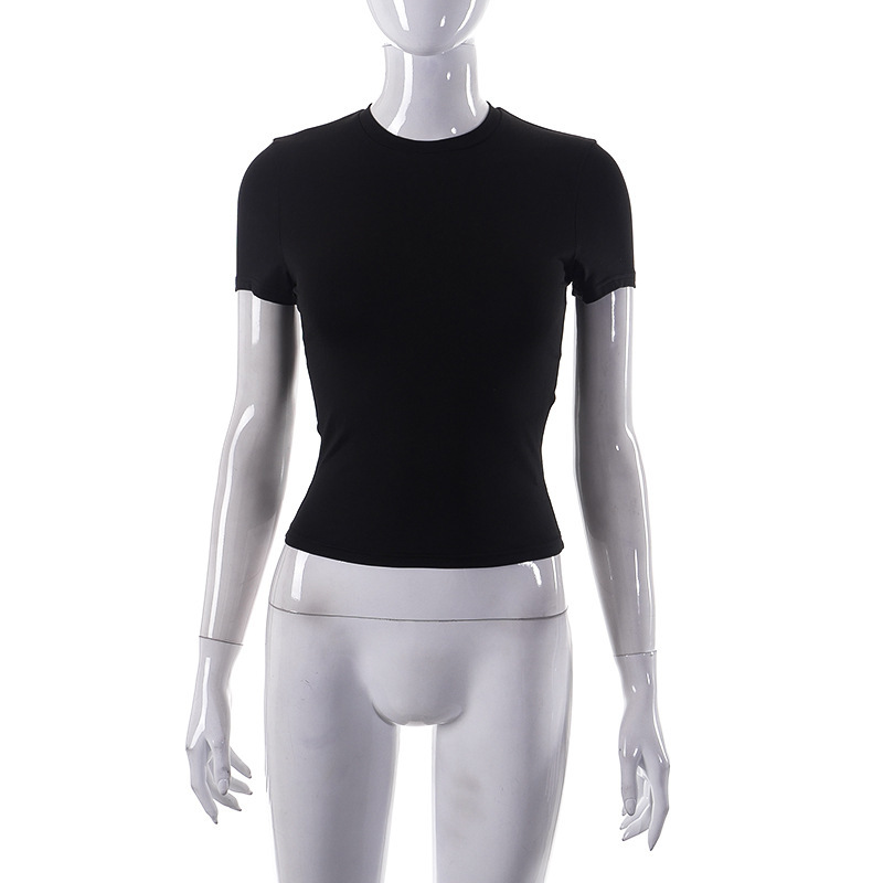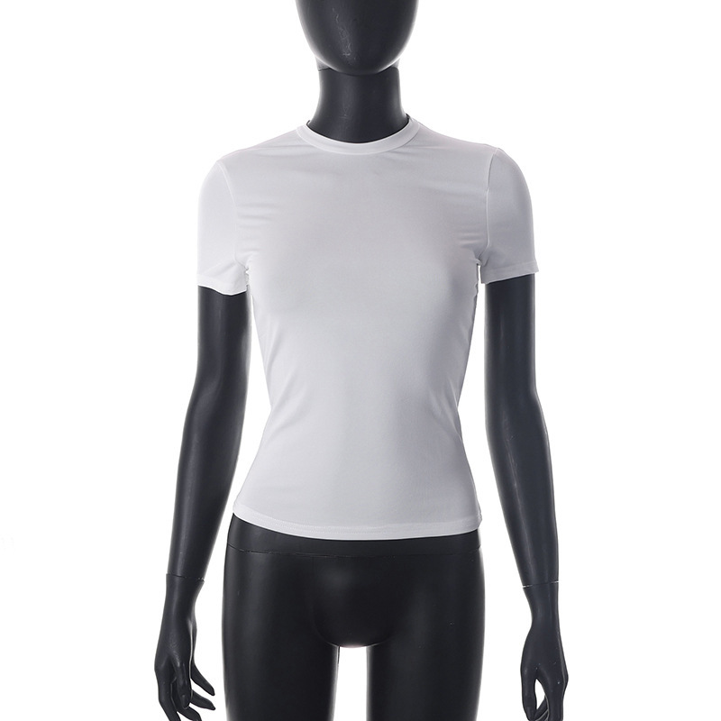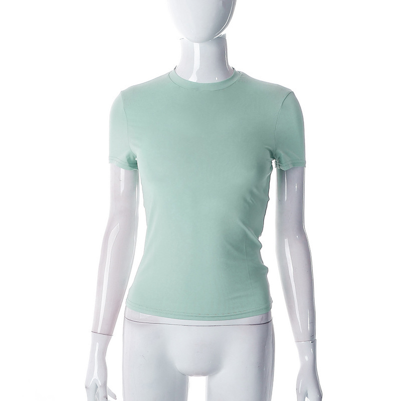 Churchf Churchf Women's Spring New Hot Selling Solid Color Round Collar Short Sleeve Basic T-Shirt Top