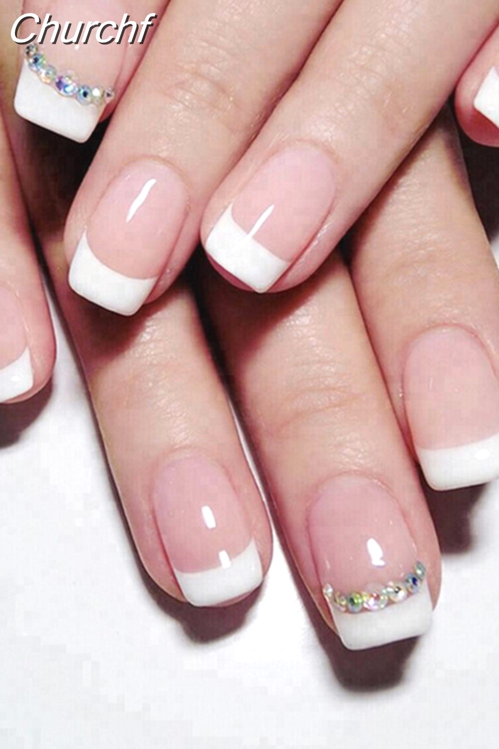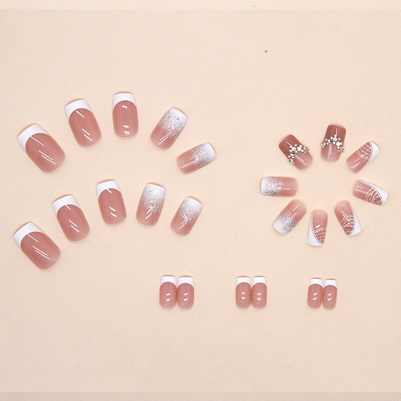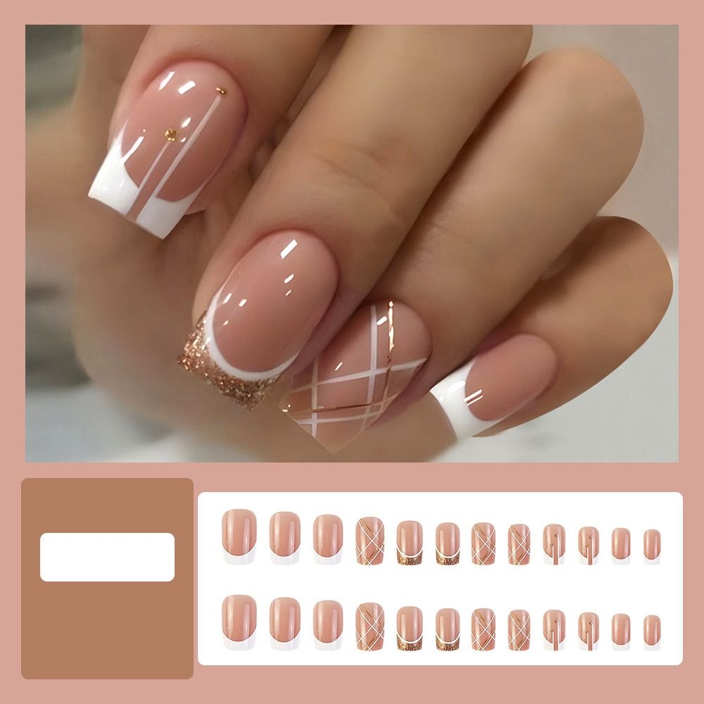 Churchf Drill False Nails Set Simple French Short Square Head Nails Manicure Fashion Full Cover Fake Nail Tips Press on Nails-Nail Inspo