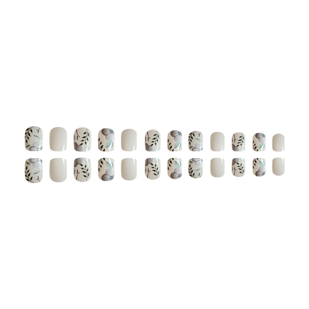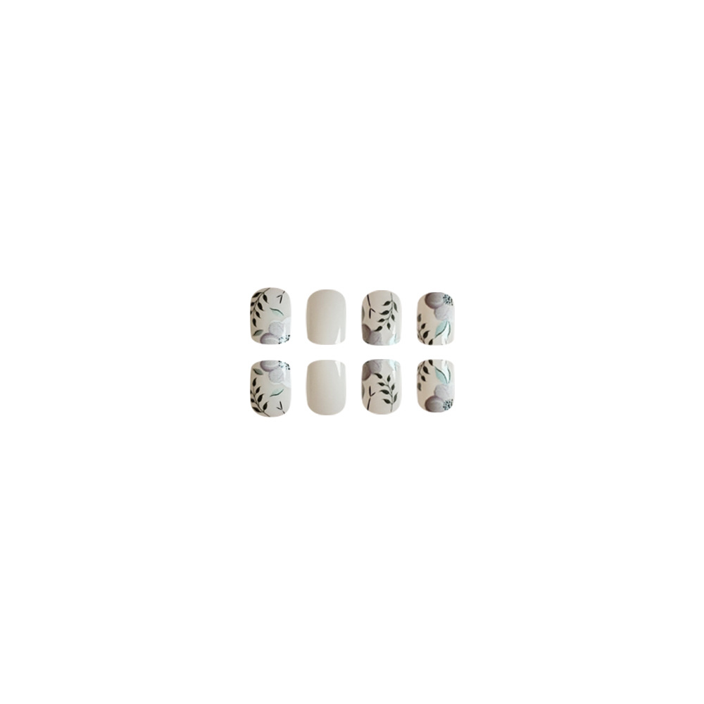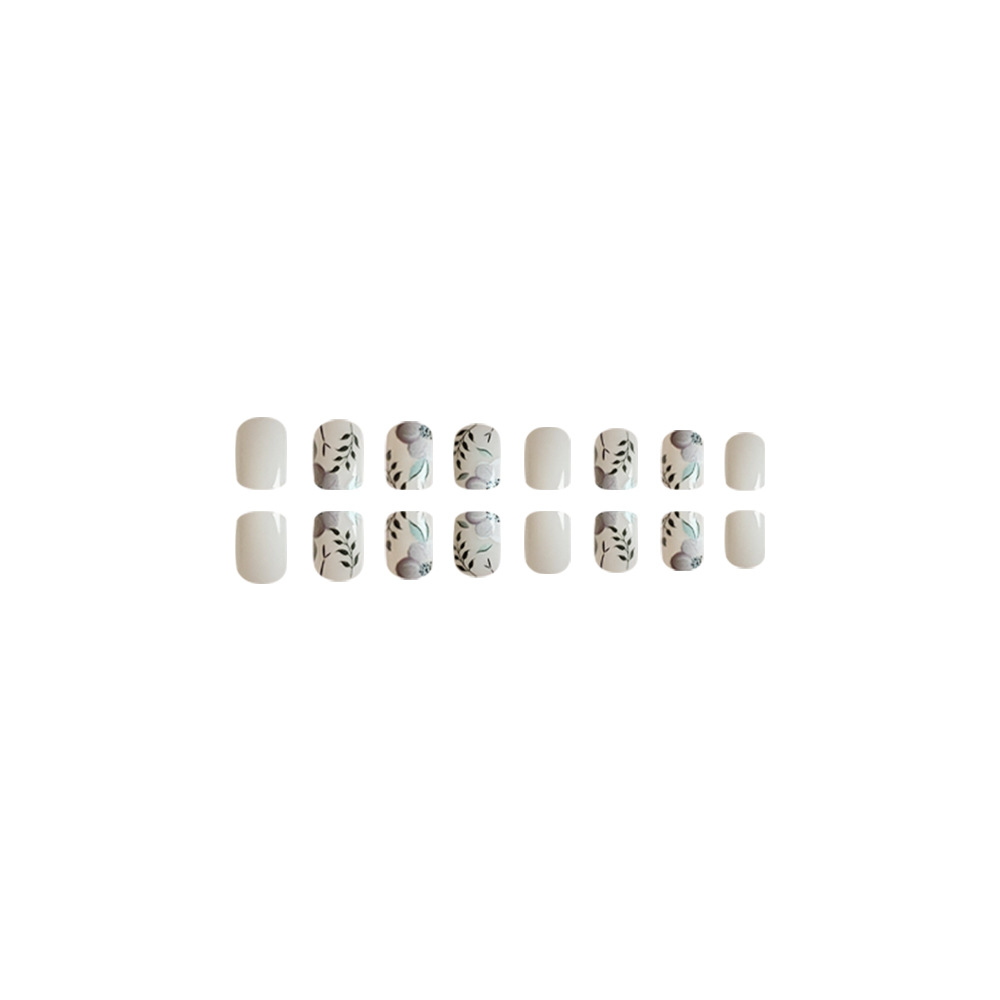 Churchf Flowers Green Leaves Wear Nail Piece Short Square Bright Polish Nail Patch Removable Finished Product