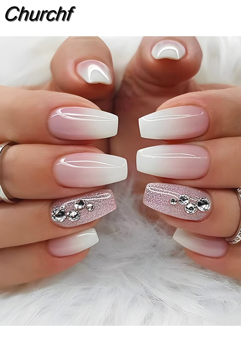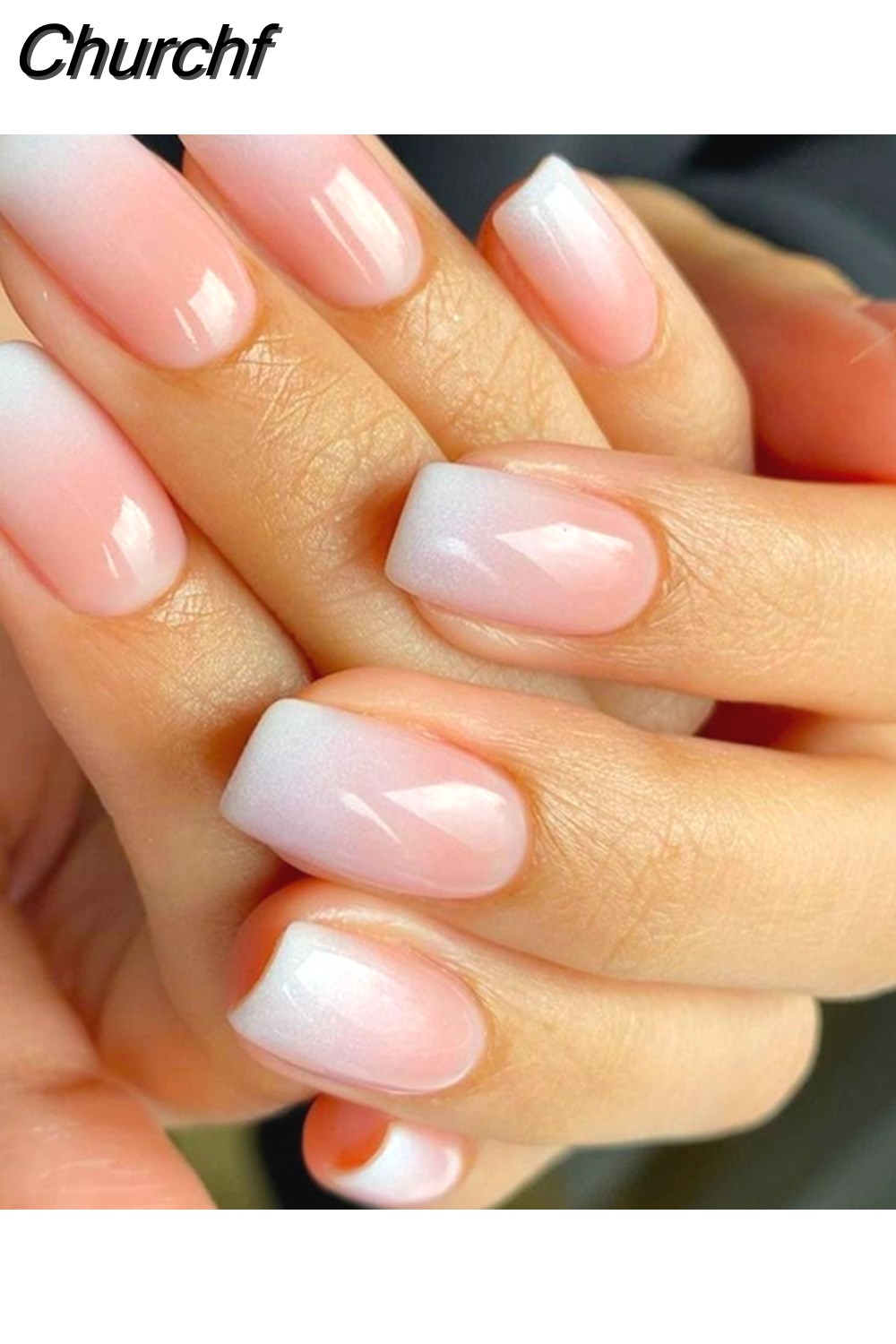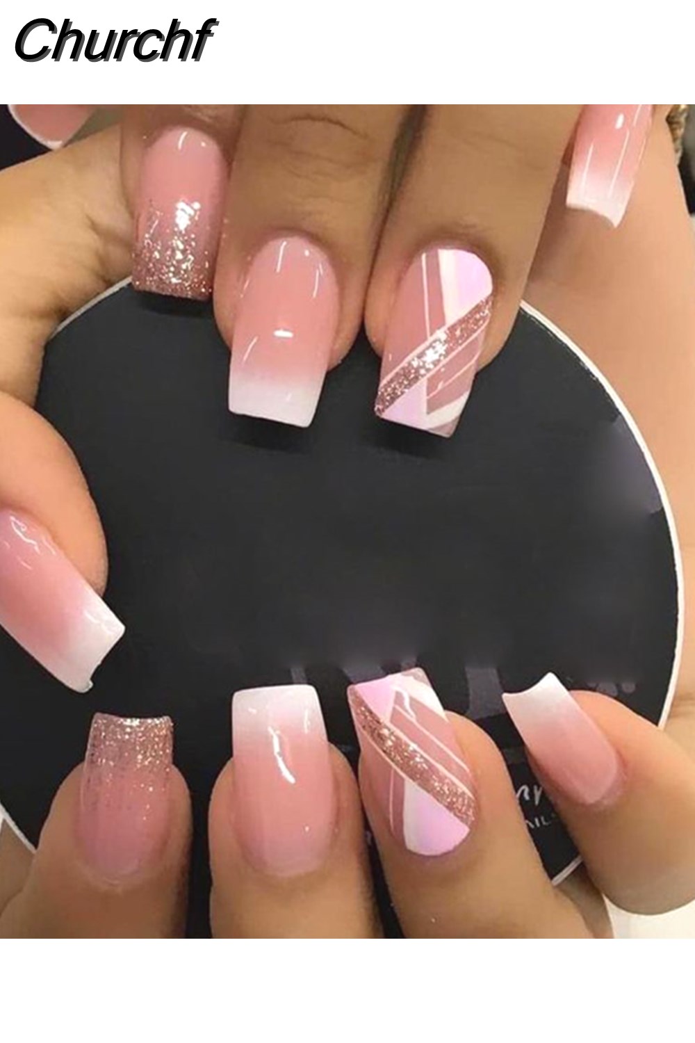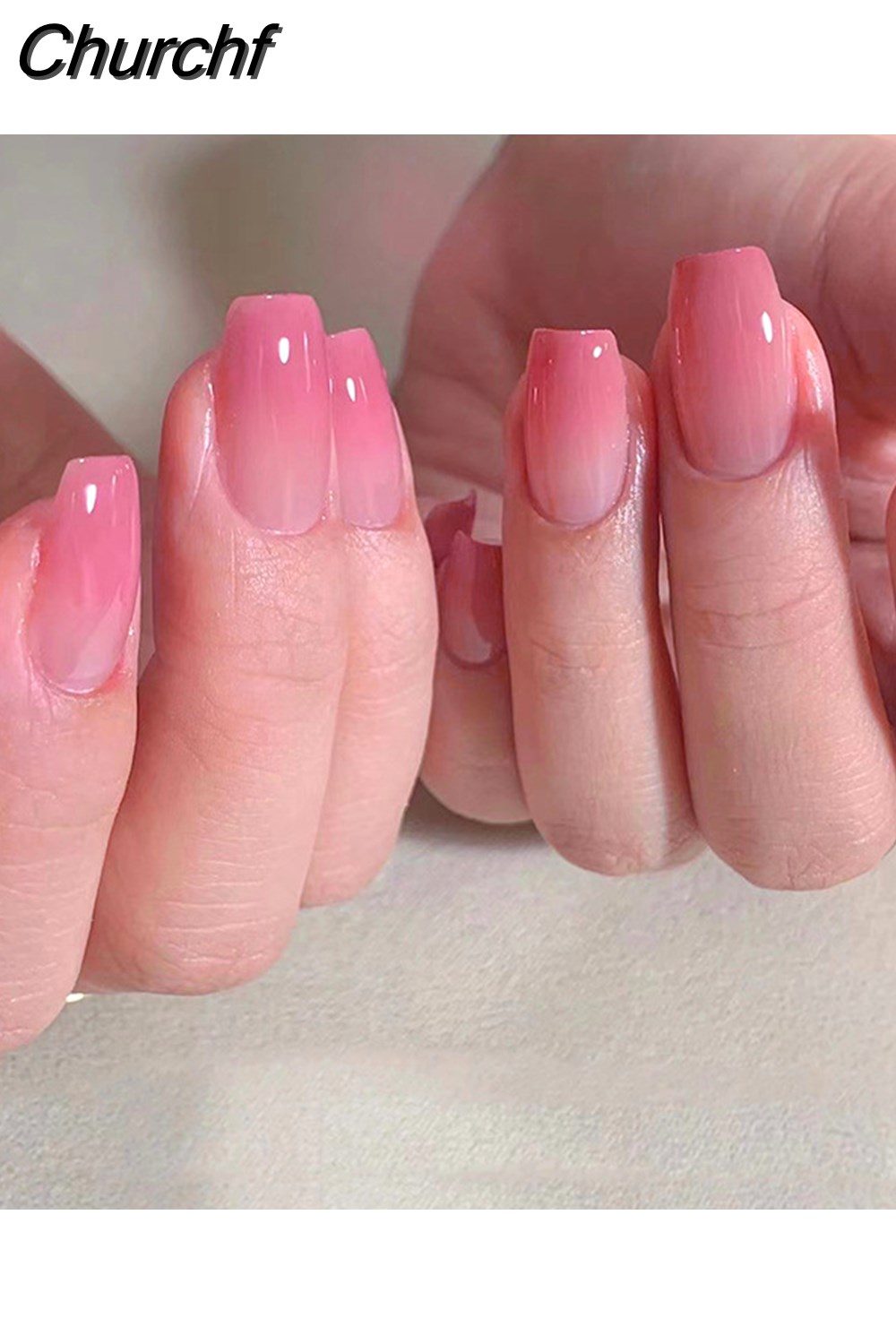 Churchf French Ballerina Fake Nail Pink Gradeint Natural Coffin False Nails Wholesale Nails Supplier Manicure Tool 24pcs/Box-Nail Inspo