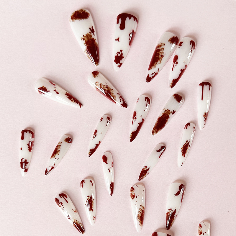 Churchf Fresh And Simple Blood Color Milky White Long Pointed Nail Products Can Be Removable Wearable Nail Paste Fake Nails