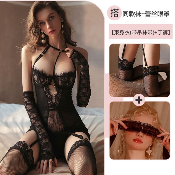 Churchf Insight Sexy Transparent Tender Strapped Garter Passion Clothes Seduction Uniform Passion Set