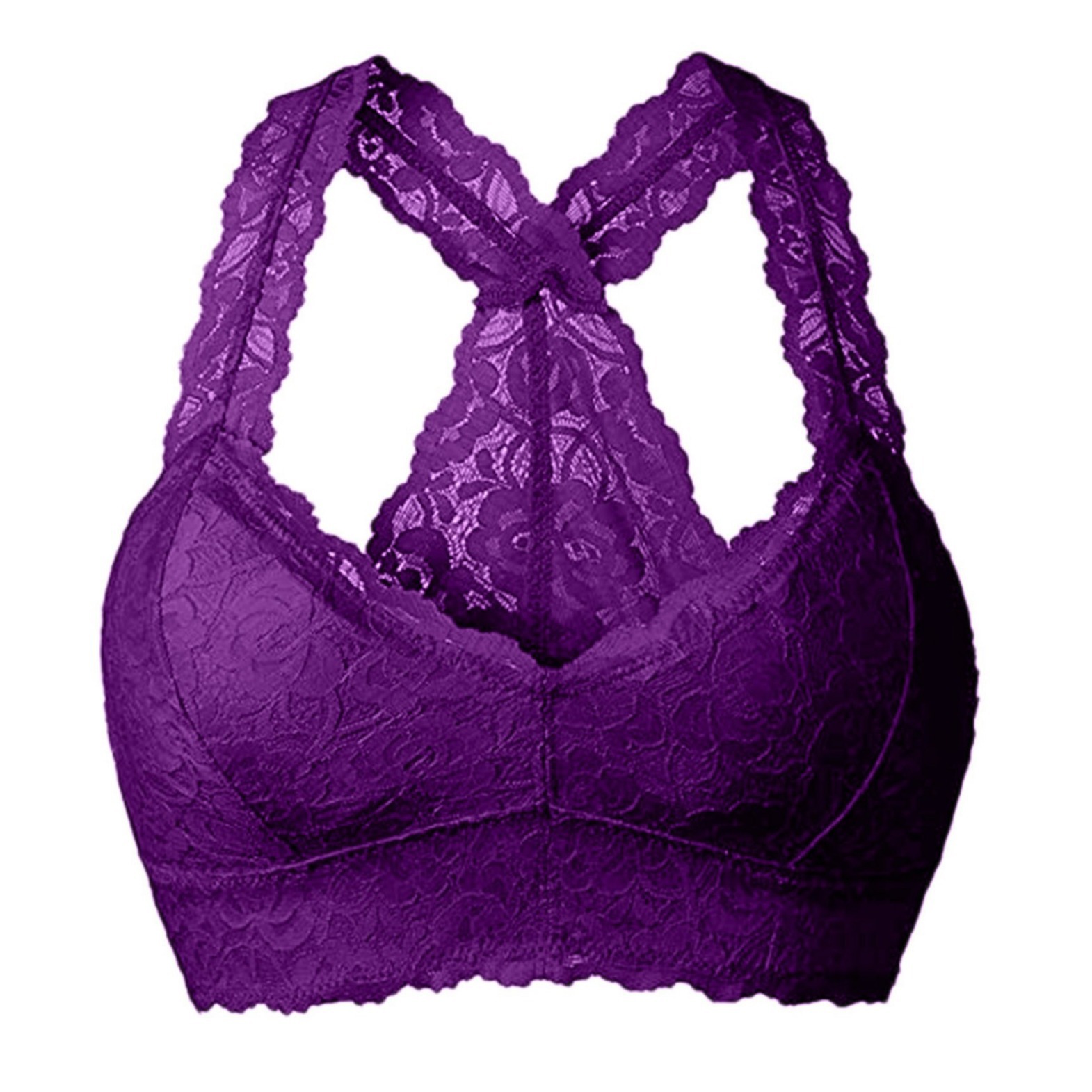 Churchf Large-Size French Underwear Multi-Colored Lace Back Wrapped Breast Sexy V-Neck Fixed Cup Mat Agglomeration To Receive No Steel Ring Bra