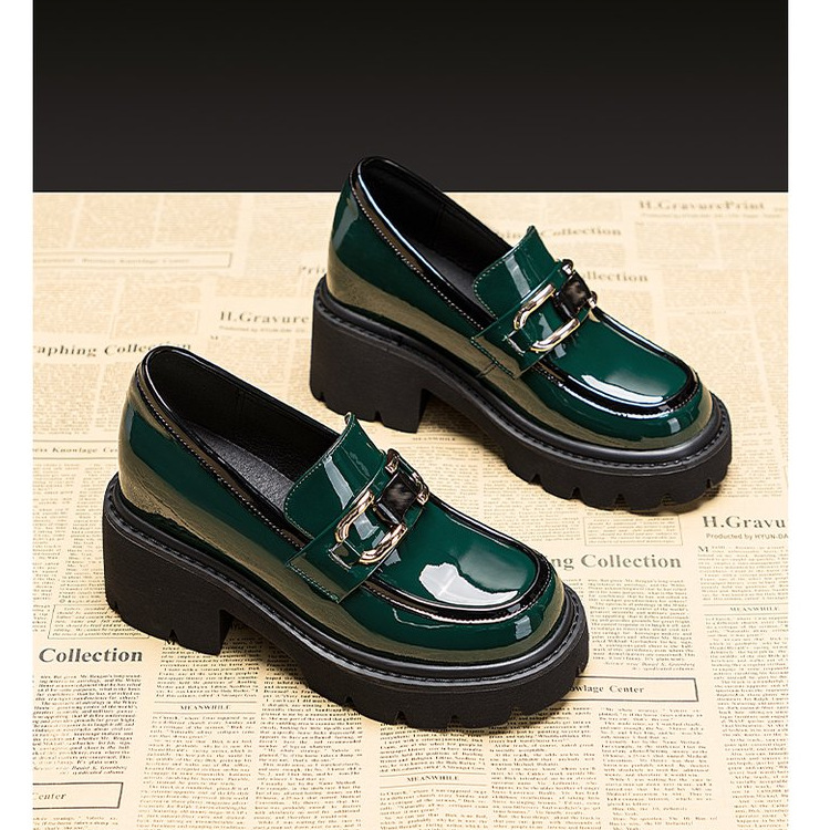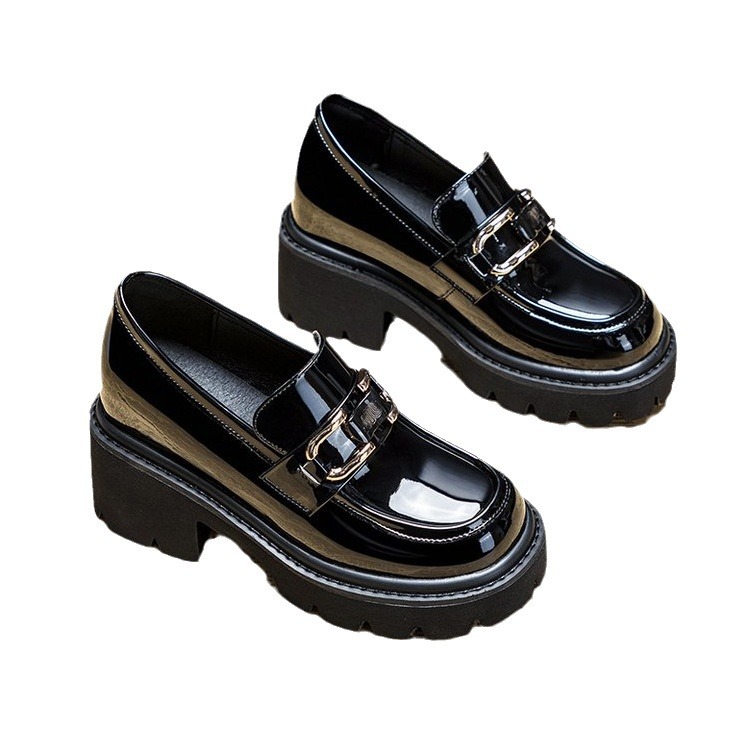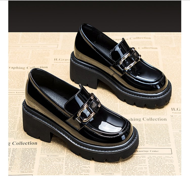 Churchf Leather Shoes Female British Wind 2025 Spring Autumn New Autumn Black Patent Leather Love Platform One Foot Pedal Single Shoes