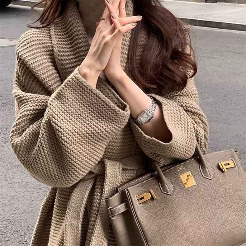 Churchf Pound Waist Strap Design Loose Large Size V Collar Cardigan Coat Female Autumn New Languid Lazy Wind Thick