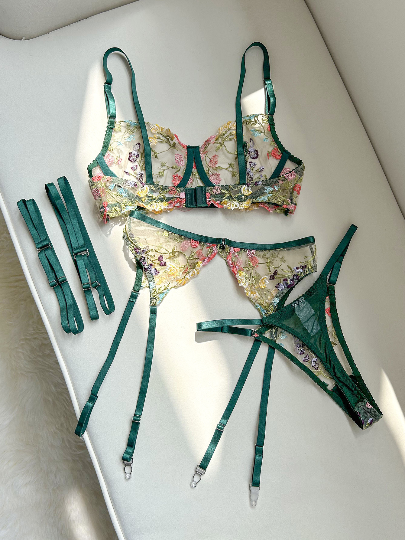 Churchf Sex Lingerie Sexy Embroidery Beauty Small Broken Flower Color Bra Garter Set