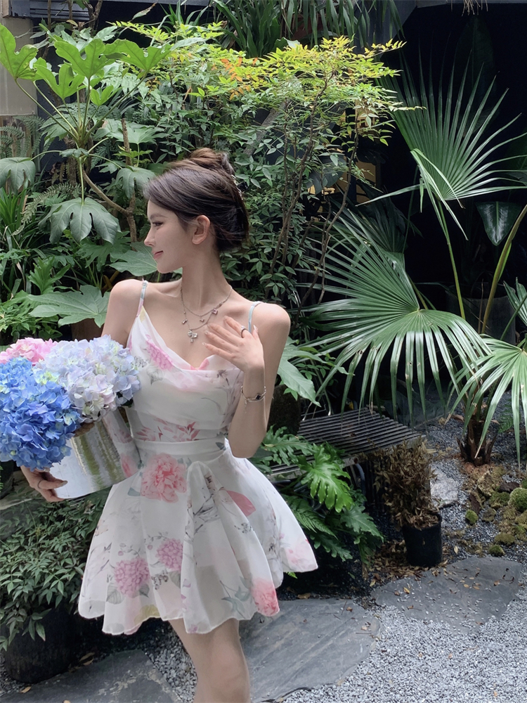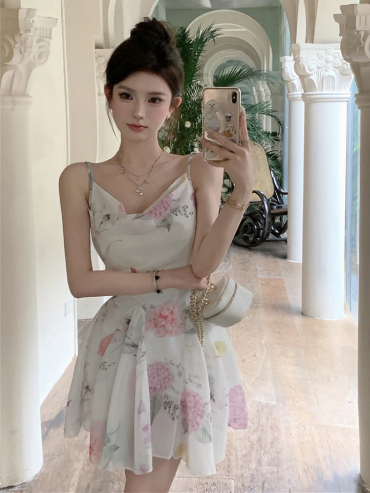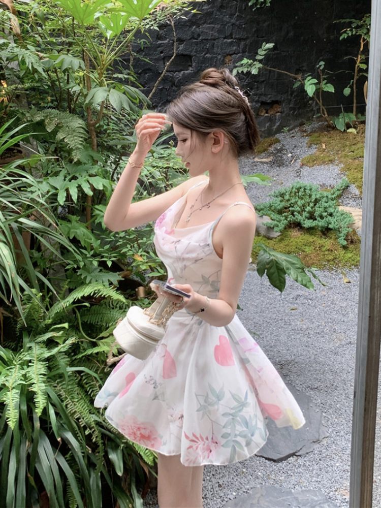 Churchf Sexy Dresses Women Floral Printed Swinging Collar French Style Chic Summer Elegant Sweet Dress Ladies Backless Vintage-Outfit Ideas