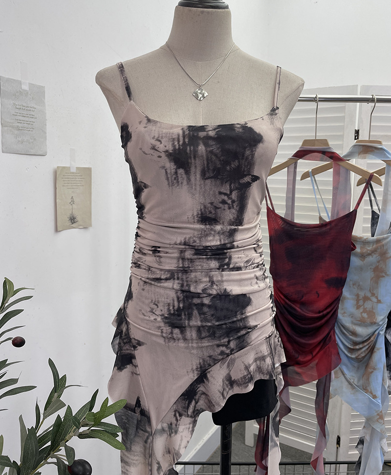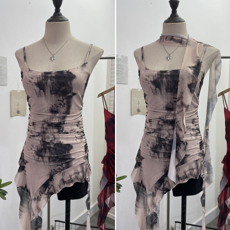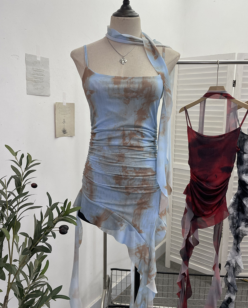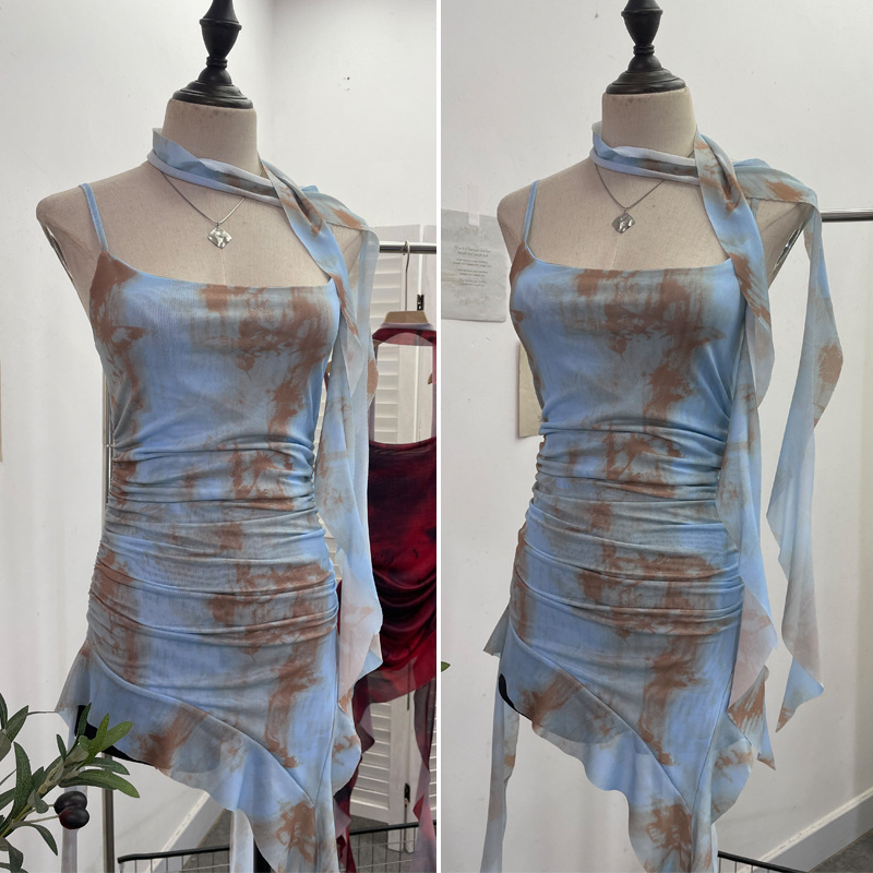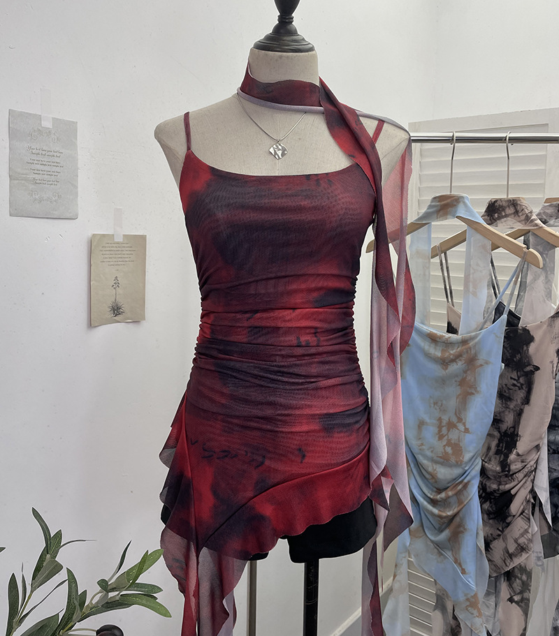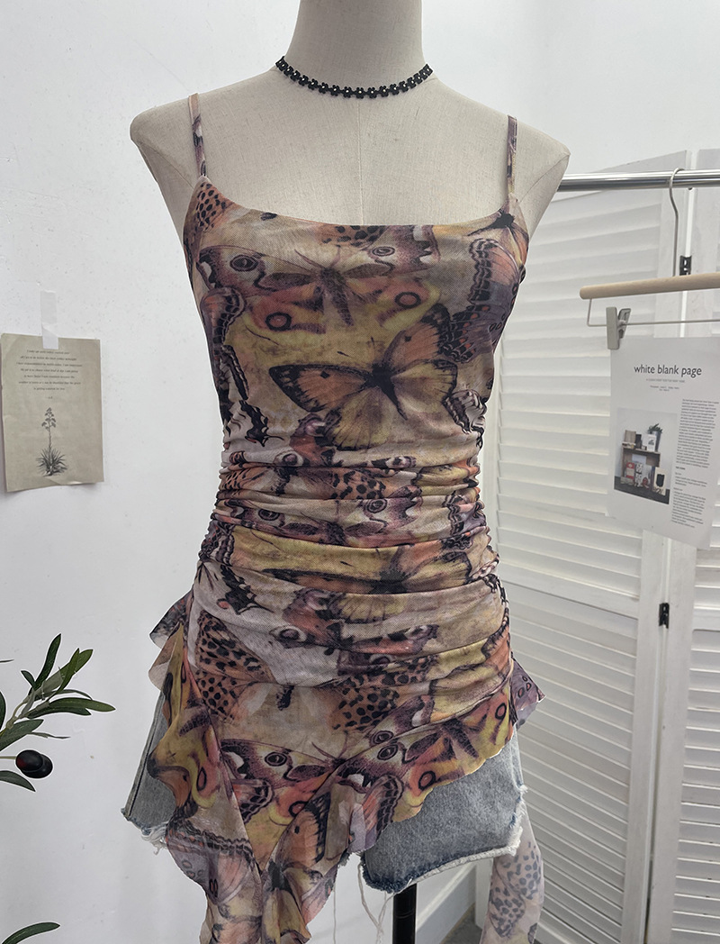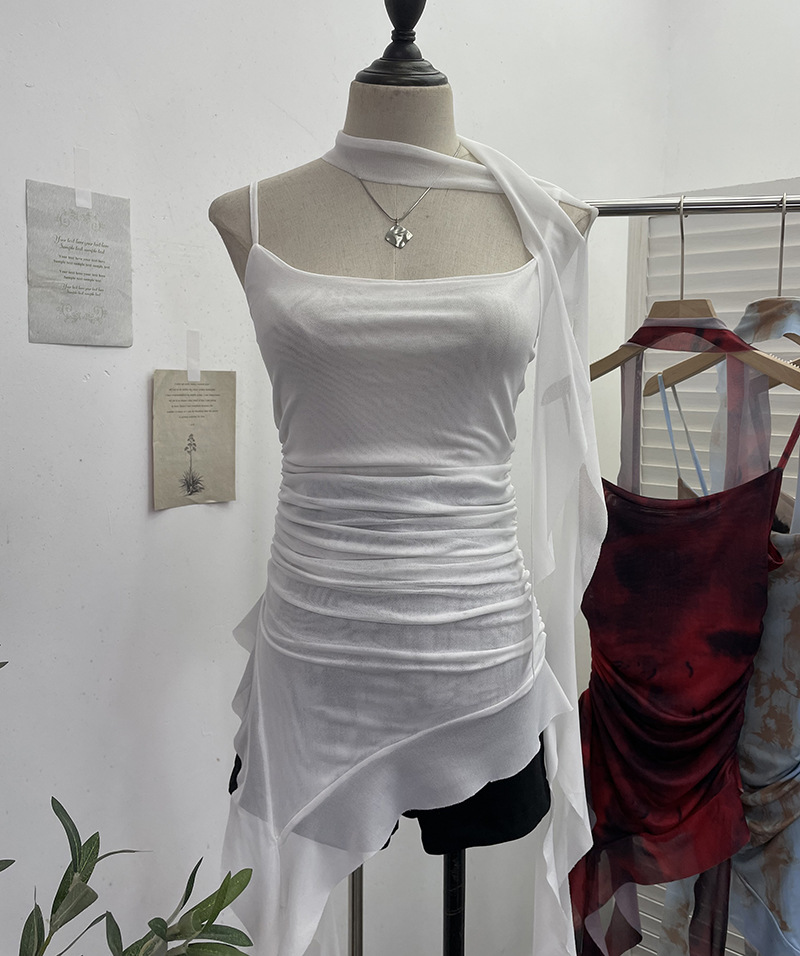 Churchf Spice Girls Irregularly Designed Lotus Leaf Edge Ribbon Sling Vest Tie Mesh Folding Top 9962