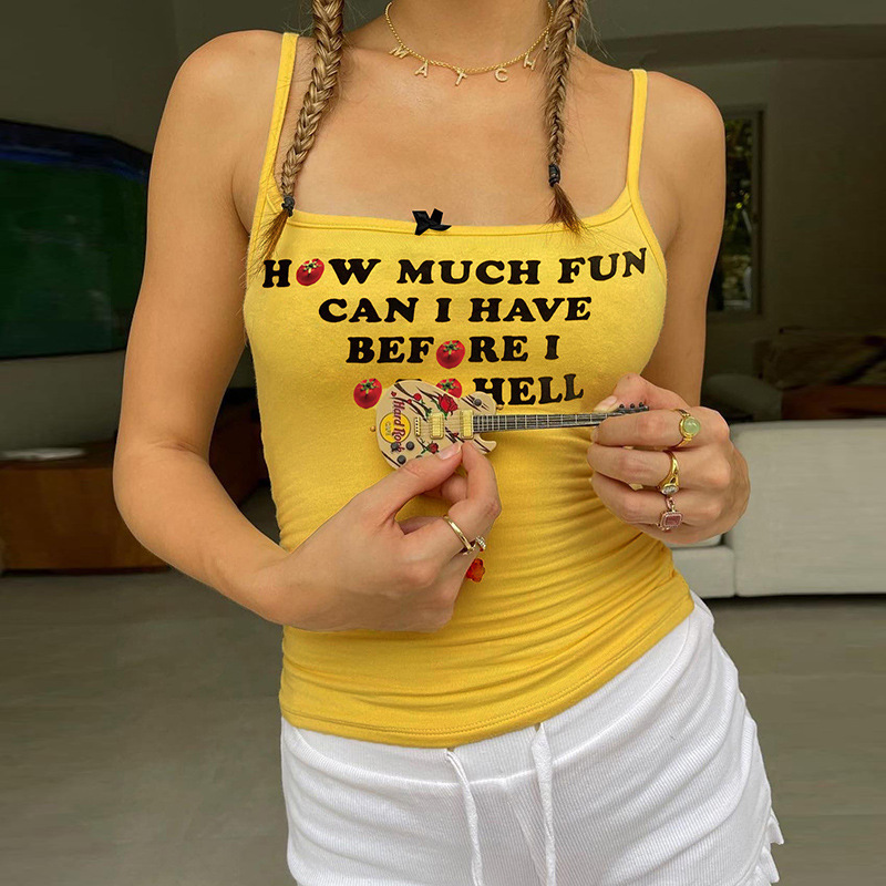 Churchf Spring 2024 New Fashion Babes Casual Blouse Knitted Sling Belt Short Umbilly Inside Vest Direct Sales