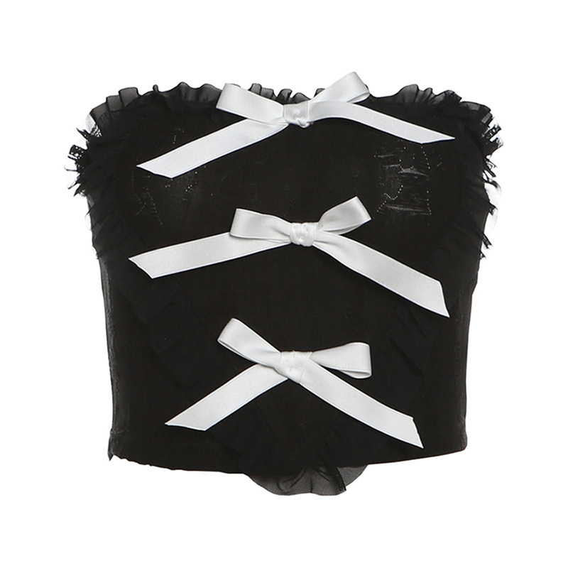 Churchf Spring 2024 New Women's Chic Sexy Bow Bow Tight Love Lotus Leaf Side Vest