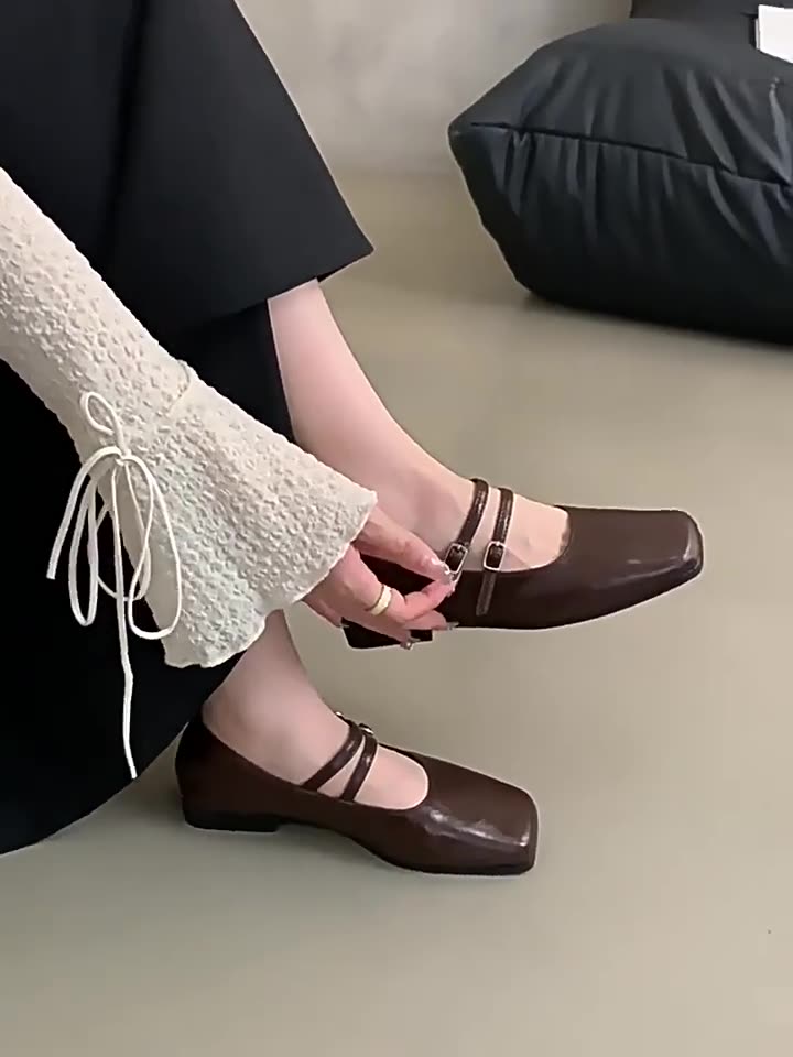 Churchf Style Dress, Shallow Mouth, Vintage Leather Shoes, Women's 2024 New Spring And Autumn Flat-Soled Mary Jane Shoes-Outfit Ideas
