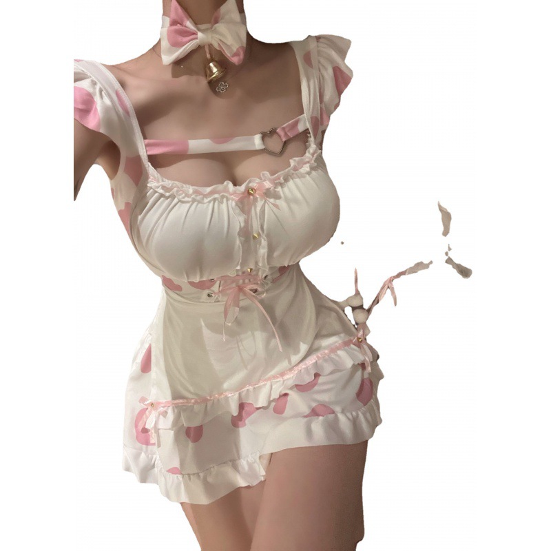 Churchf Tiffin't Hot Lingerie Sexy Pink Cow Uniform Set Bunny Maid Role Playing Pajamas
