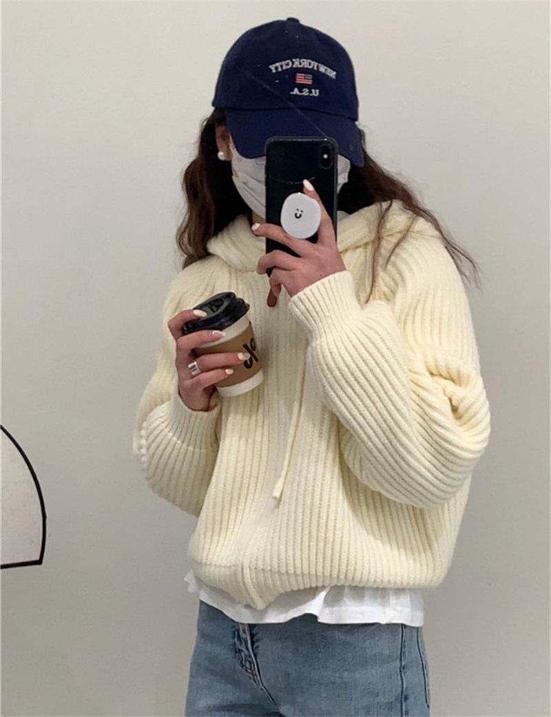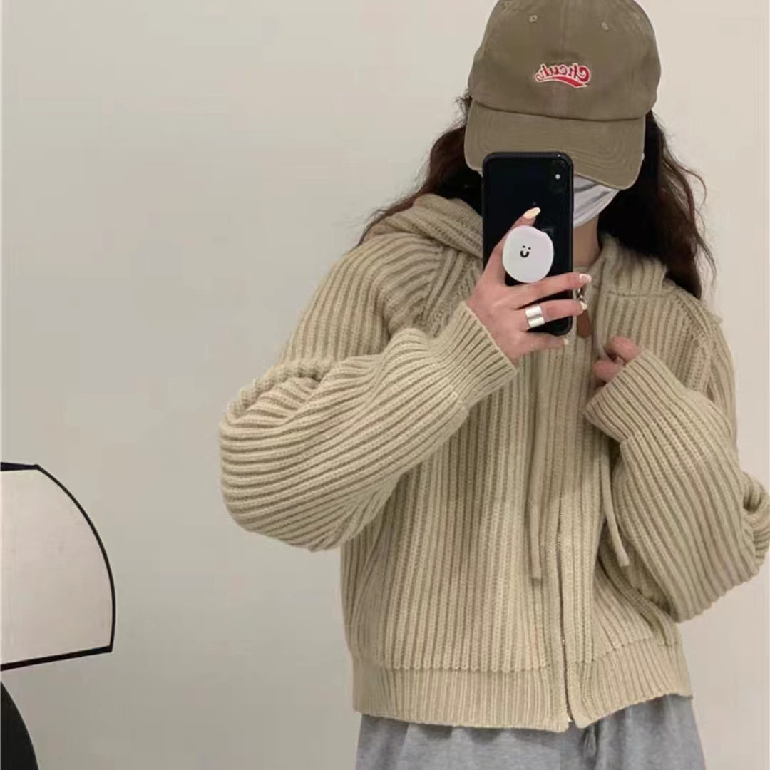 Churchf Version Lazy Wind Pit Zipper Hooded Cardigan Female Fashion Short Gentle Wind Soft Waxy Sweater Coat Female