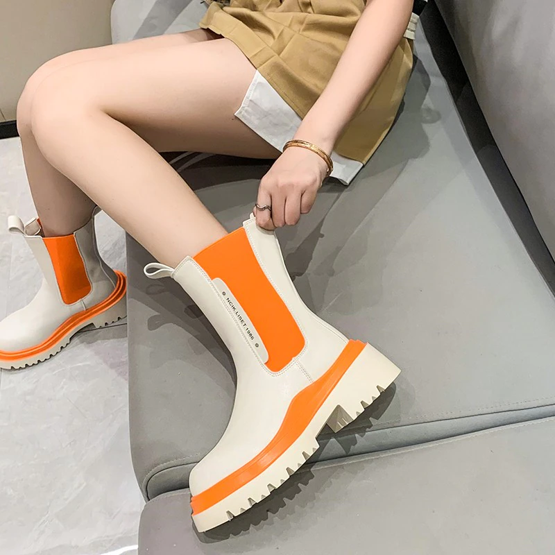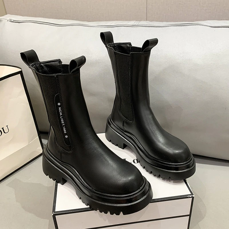 Churchf Women Chunky Heel Ankle Boots Woman Shoes Autumn Brand Designer Chelsea Boots Female Platform Boots Lasdies Fashion Combat Boots-Outfit Ideas