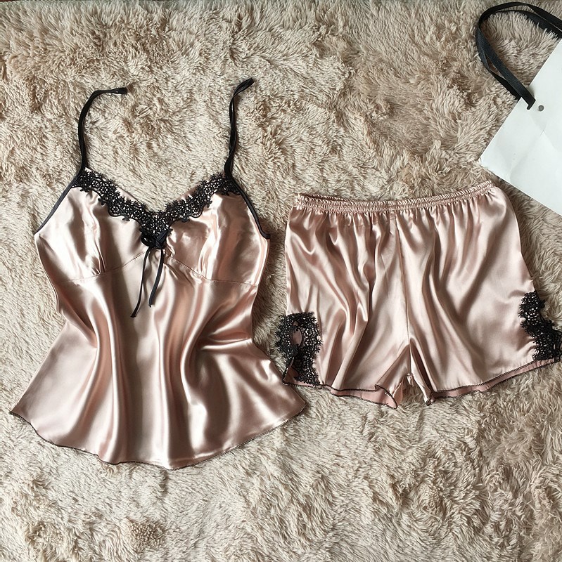 Churchf Women's Sexy Pajamas Simulation Silk Pajamas Large-Size Water-Soluble Embroidered Home Underwear Pyjamas Two-Set