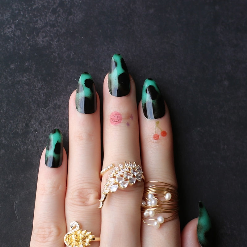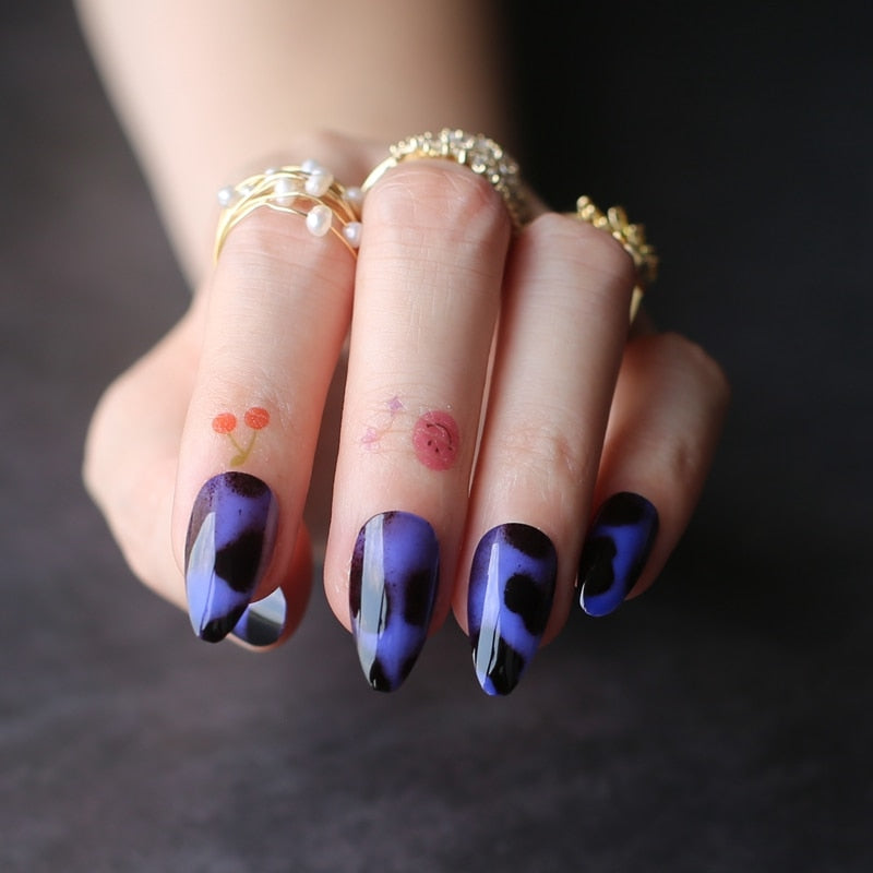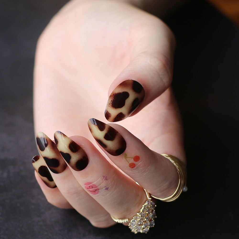 Classic Cheetah Brown  Fake nails Almond Acrylic nails Glossy Stiletto False nails Short leopard print yellow-Nail Inspo