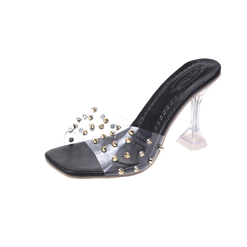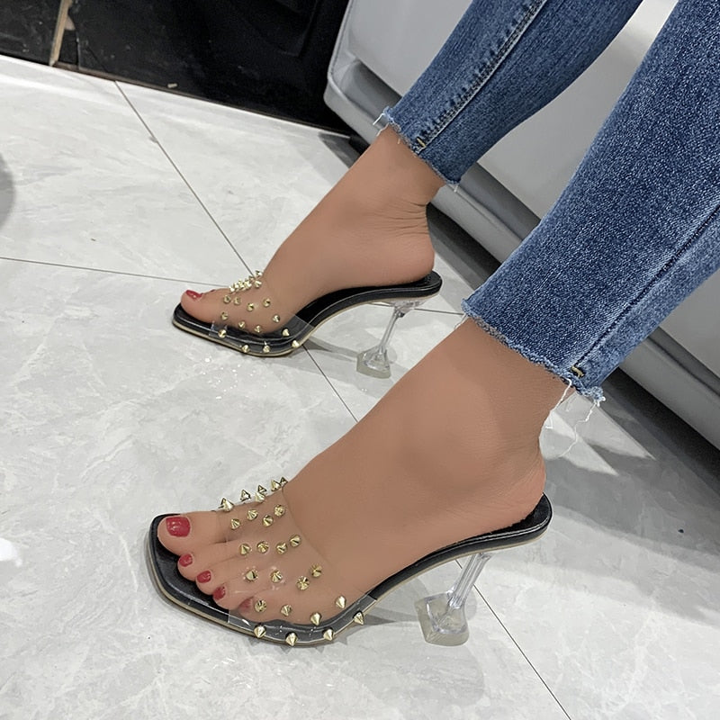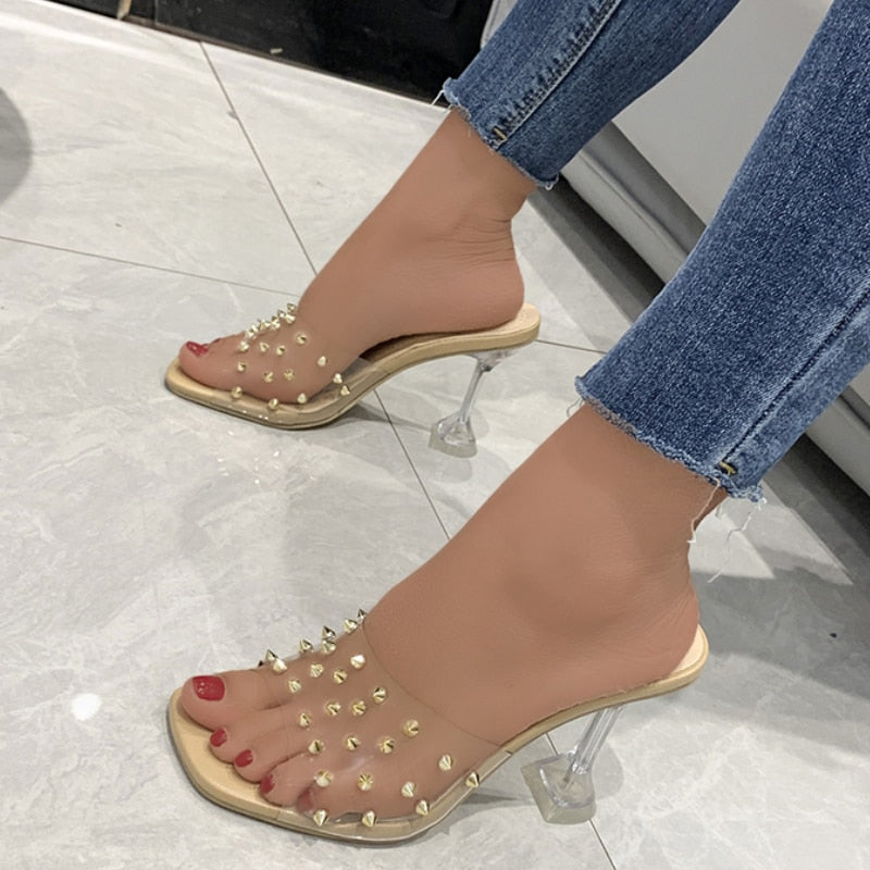 Crystal Clear Transparent Slippers Female Shoes Middle Heels Comfortable New Summer Women Shoes Woman Fashion Cool Mules Slides