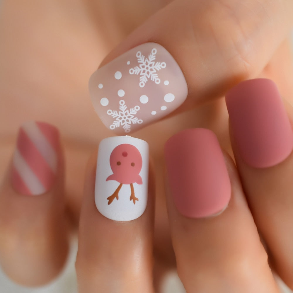 Dear Fingernails Simple Design Square Lovely Nails Short Art Nails Tips Supplies For Professionals Snowly Winter Christmas EchiQ-Nail Inspo