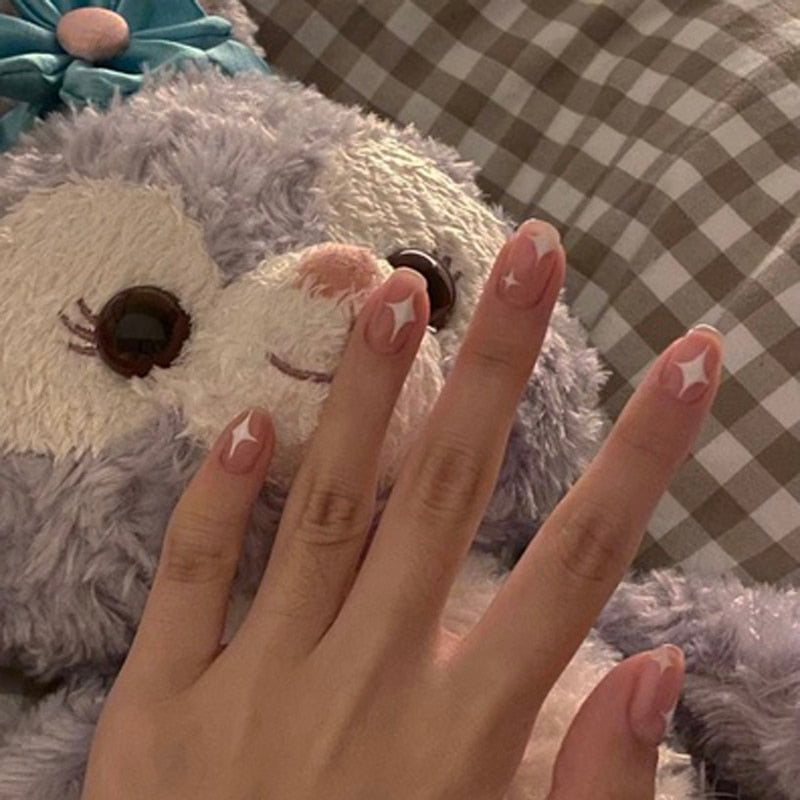 - Choose a suitable size of adhesive stickers or nail glue for your nails and stick it on your nails.
