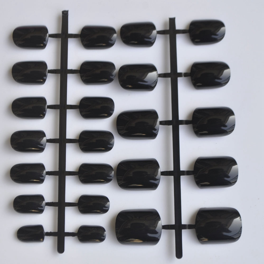 DIY Nail Salon Goods Shine Surface Classic Black 24 Pcs Sweet Carnival Candy Short False Fake Nails Full Tips Finger Nails No.B-Nail Inspo
