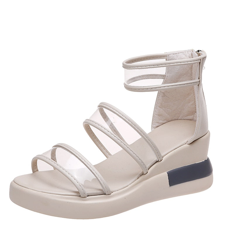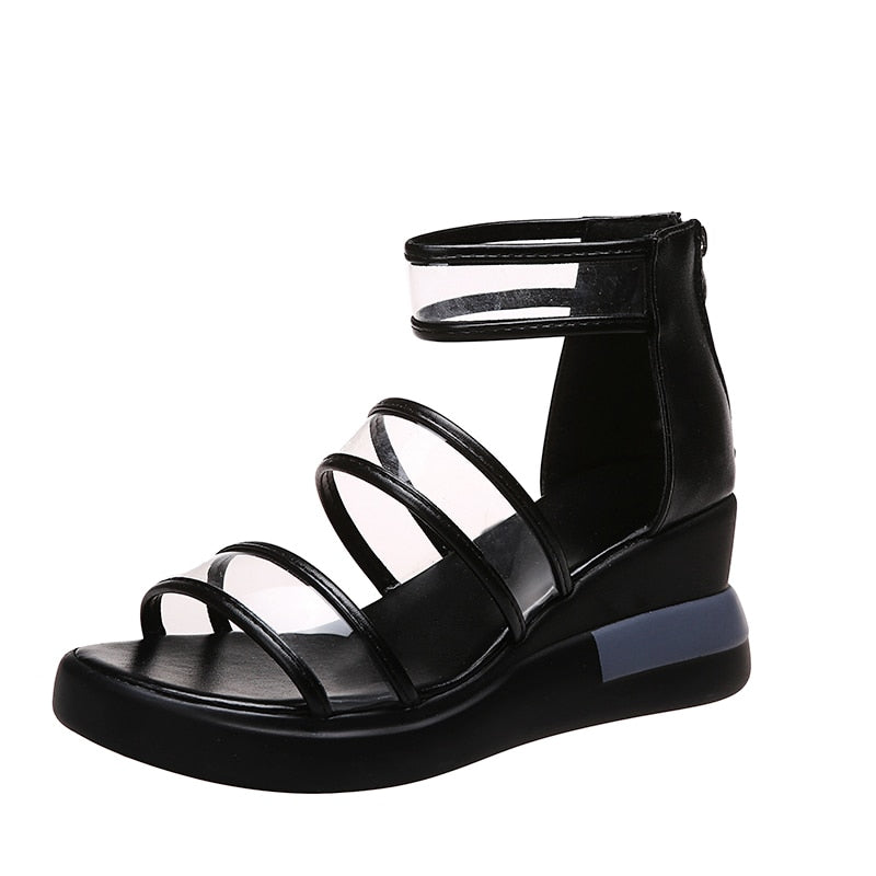 Drop Shipping 2022 New Summer PVC Sandals Platform Women Chunky Heel Outside Feet Shoes Summer Back Zipper High Quality