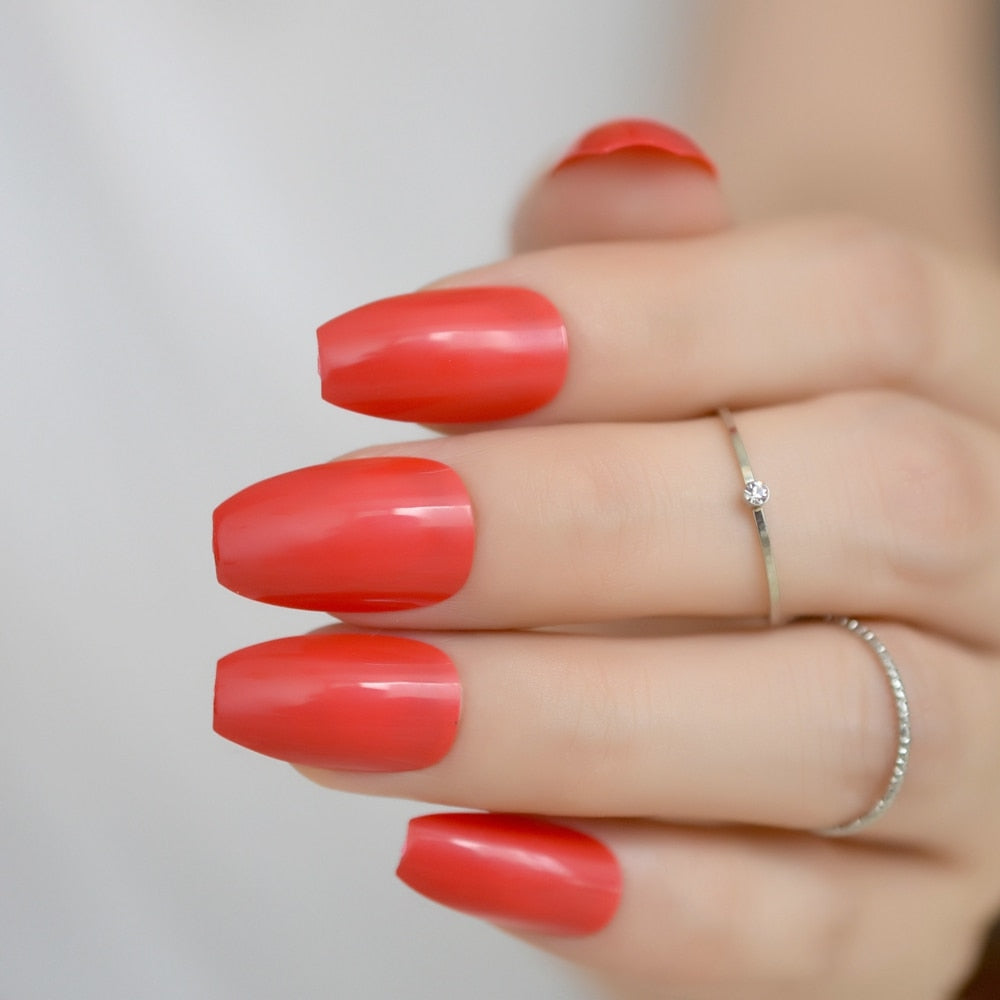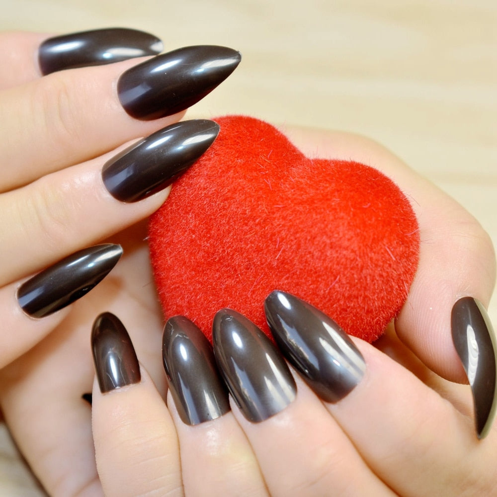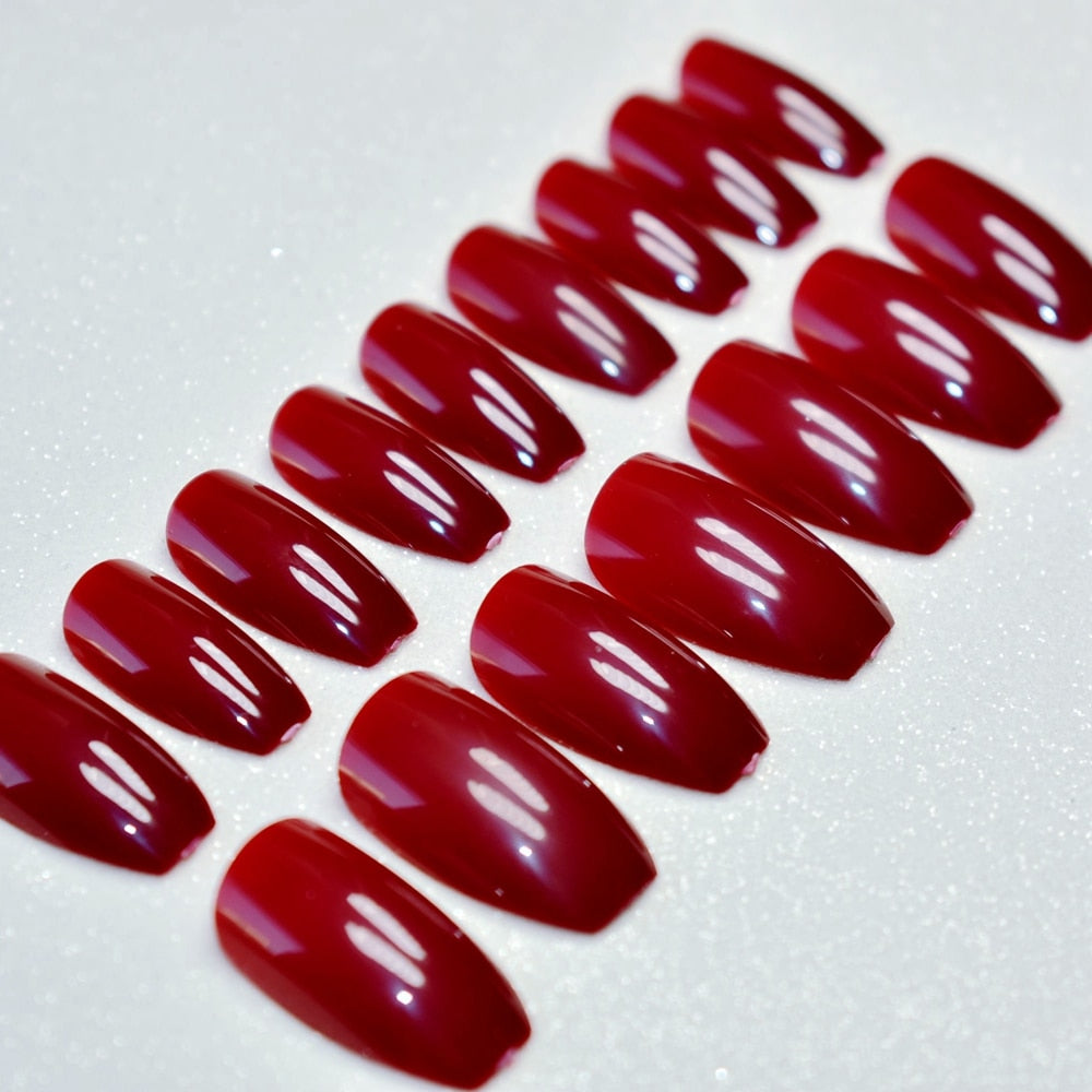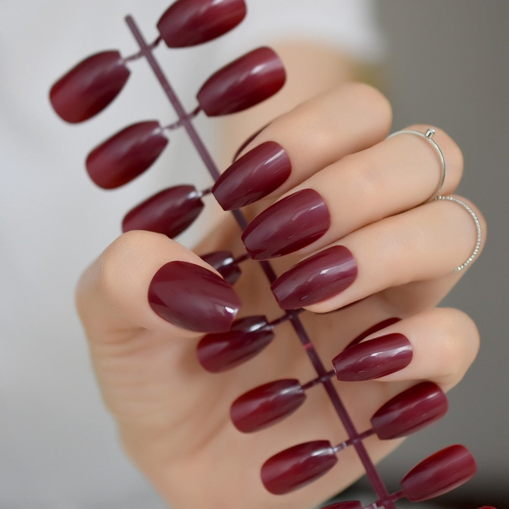 Dusty Cedar Fashion Stiletto False Nails Pointed Sharp Candy Red Fake Nails for daily wear On the Nail Tree 24pcs-Nail Inspo