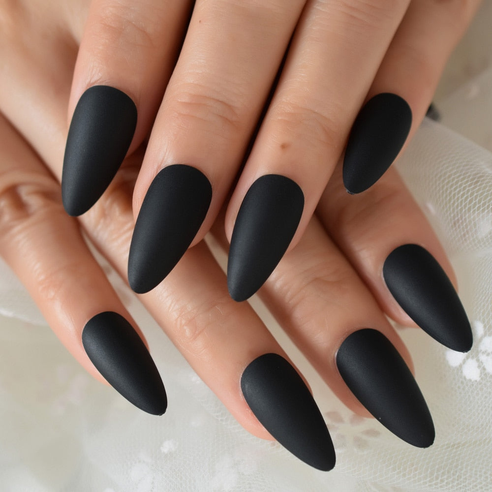 EchiQ Almond Press On Nails Black Ferns Pattern Matte Faux Ongles Beige Leaves Fashion Style Designed Tips 24-Nail Inspo