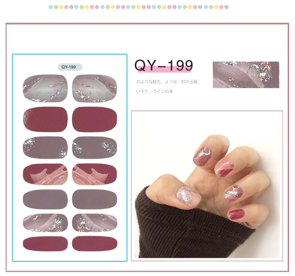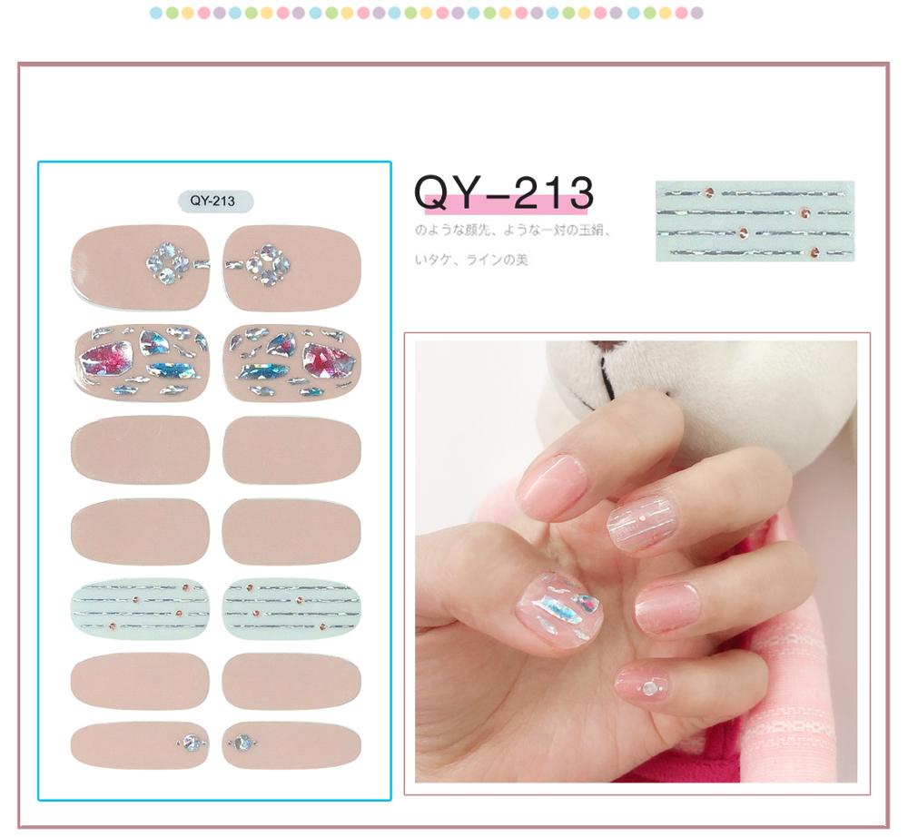 - Choose a suitable size of adhesive stickers or nail glue for your nails and stick it on your nails.