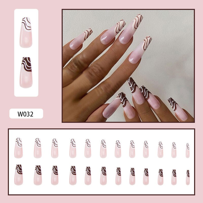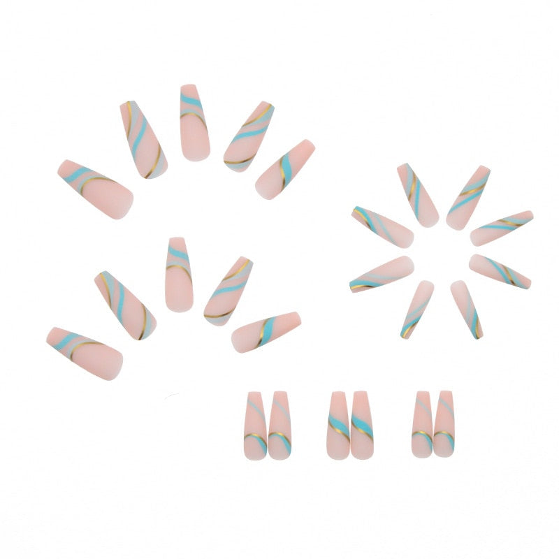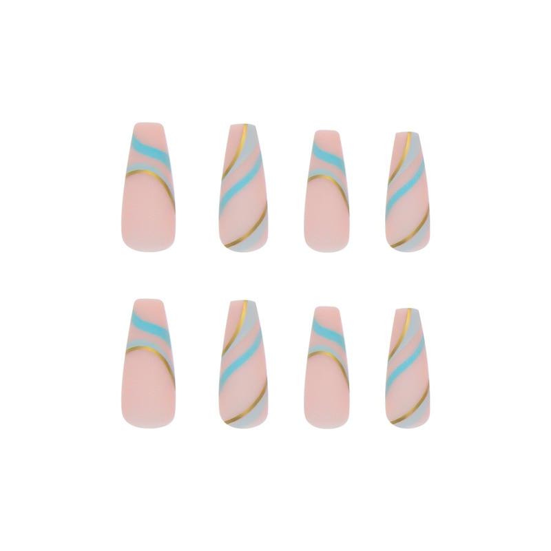 European Fake Nails Women Coffin MId Length False Nails Tip with Stripe Design Press on Matte Nail Patch for DIY Art Nail Salon-Nail Inspo