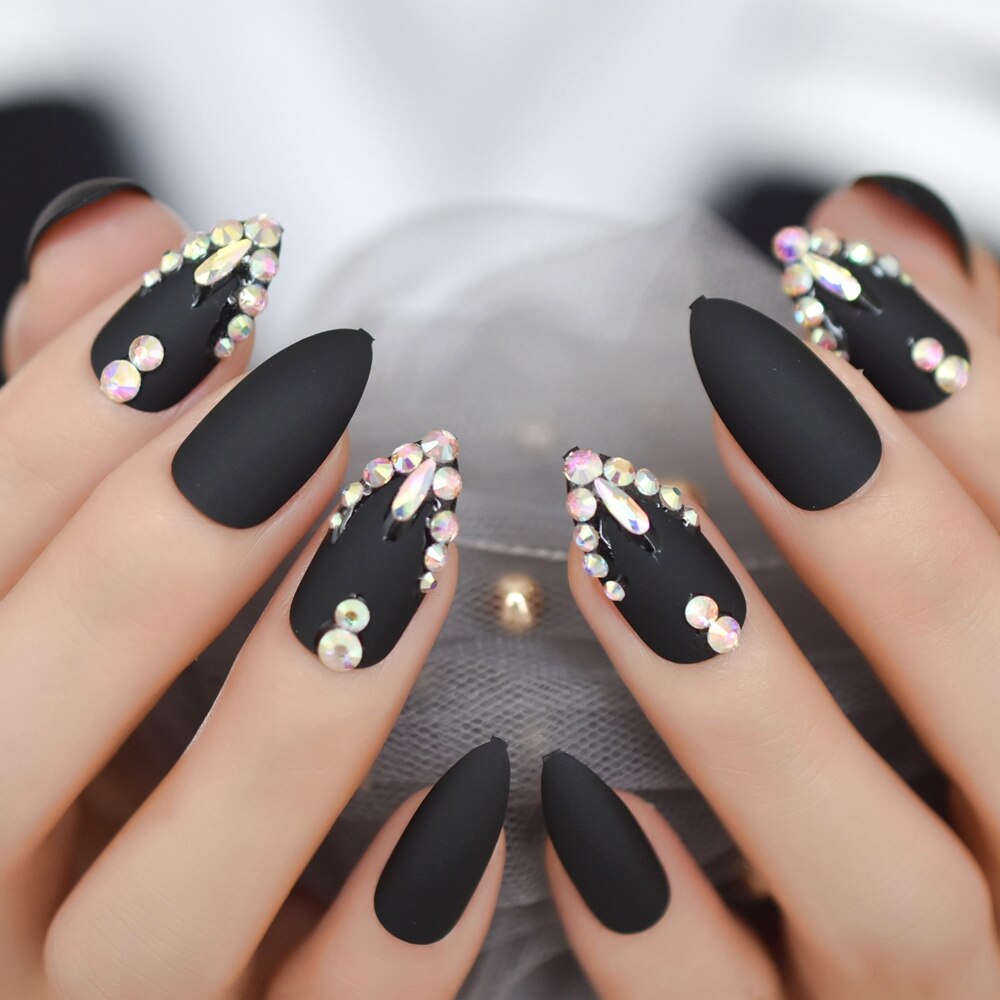 Extra Long Coffin Rhinestone Fake Nails Gel Tips Decoration Nails False Hand Dummy Fake Nails Stick On Nails Fingernails-Nail Inspo