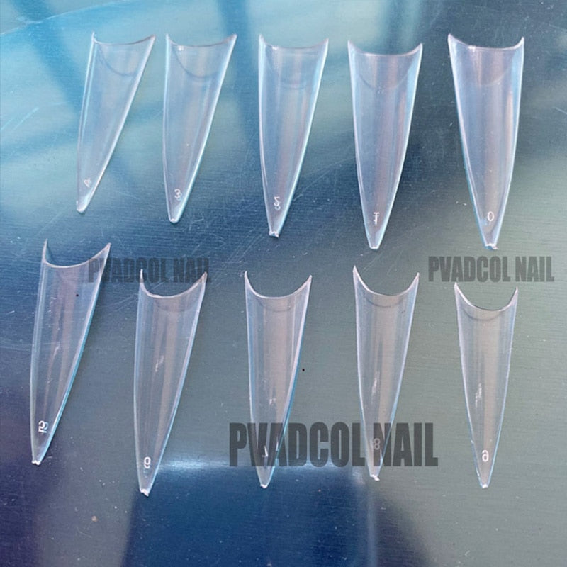 Extra Long No C Curve Stiletto False Nail Tips Acrylic Gel Clear Half Cover Fake Finger Professional Extensioin Coffin Manicure-Nail Inspo