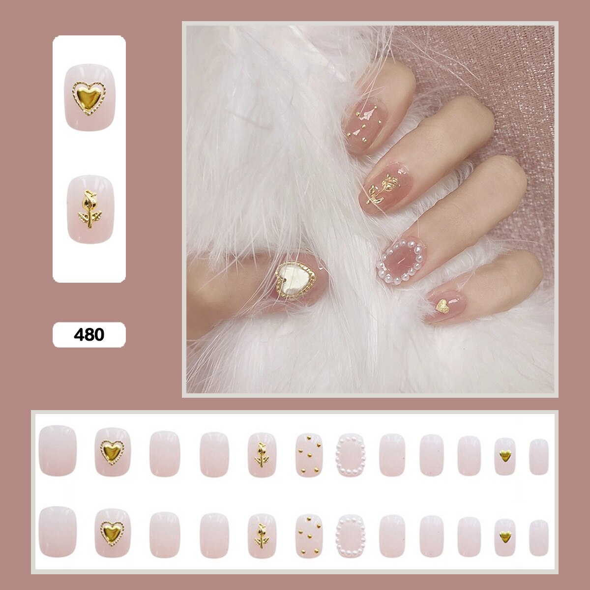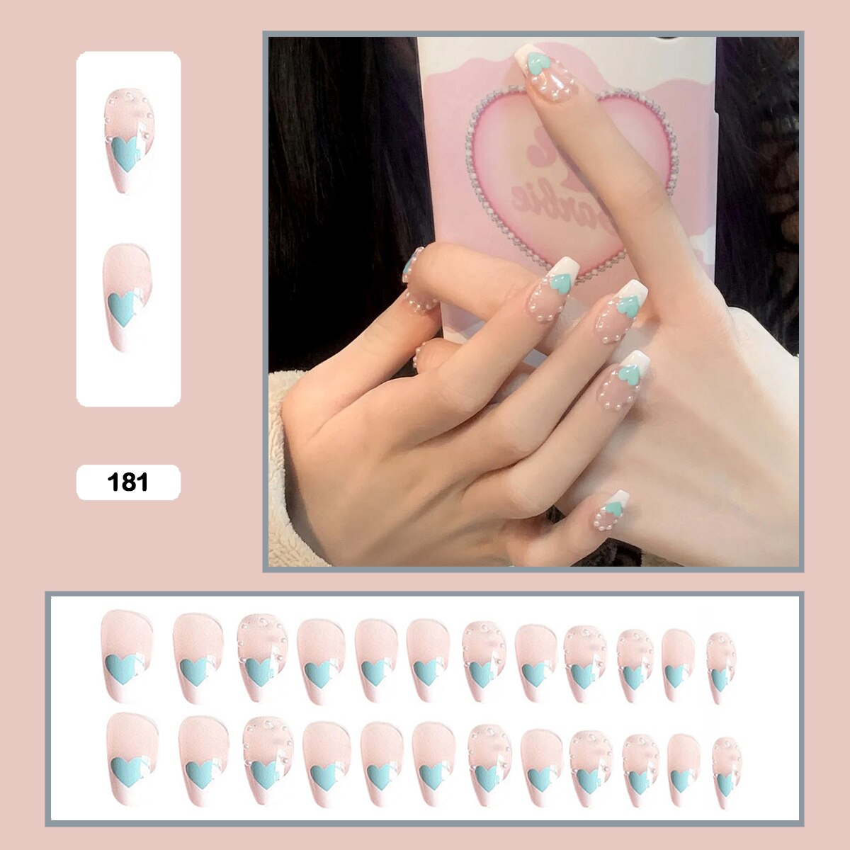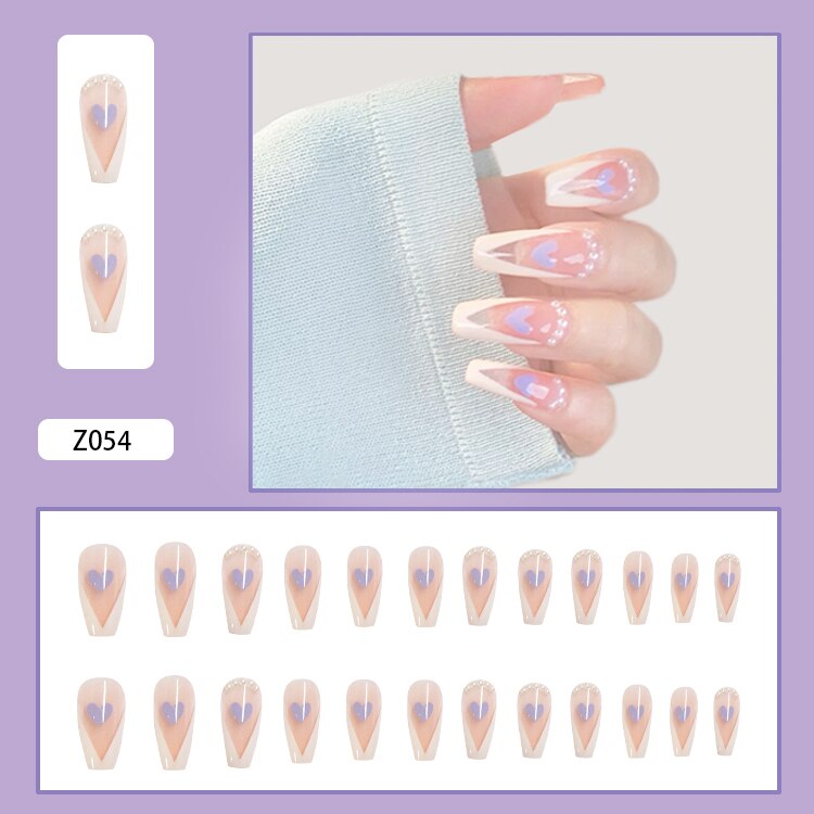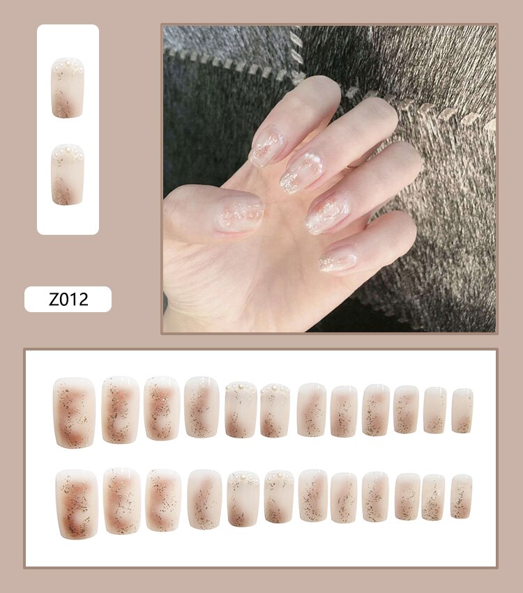 Fairy nail art Pearl decoration Wearable False Nails with glue 24pcs per box with wear tools-Nail Inspo