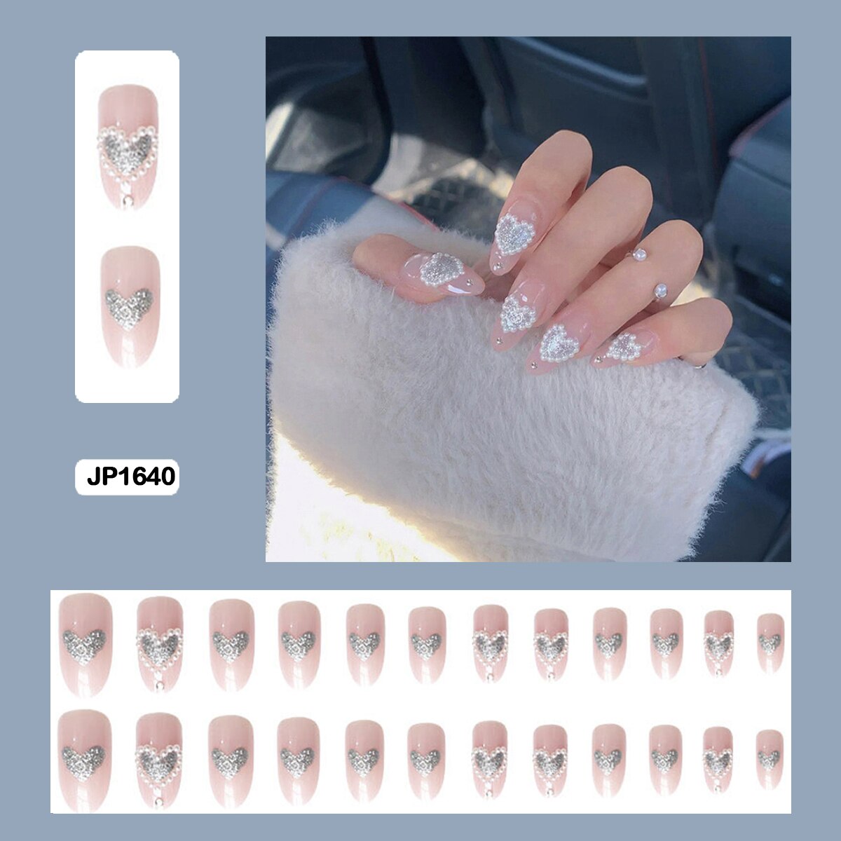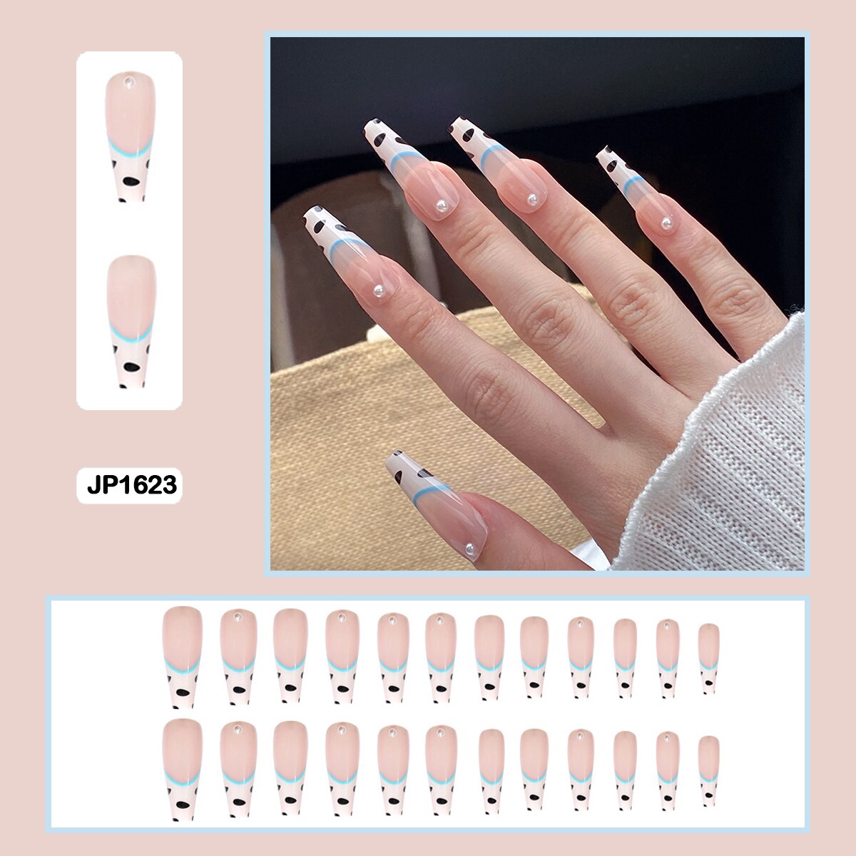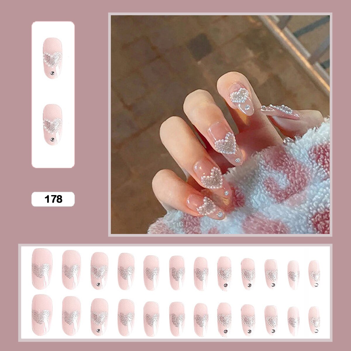 Fairy nail art Pearl decoration Wearable False Nails with glue 24pcs per box with wear tools-Nail Inspo
