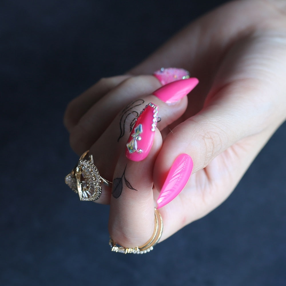 Fake Nail Tips Baby pink New fake nails ruby Rhinestone design Lovely with box Gifts for girlfriends False nails coffin-Nail Inspo