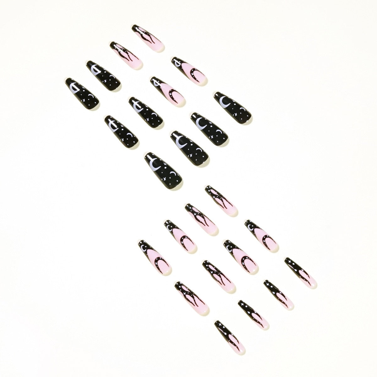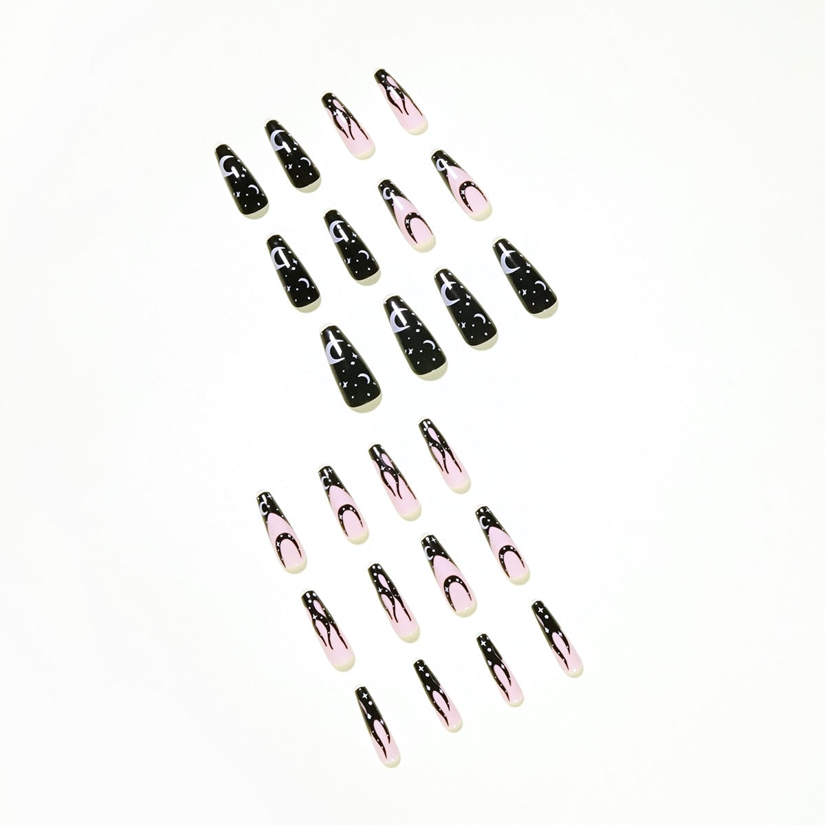 Fake Nails Black And White Star And Moon Long Full Cover Fake Nails DIY Glue Press On Nails Nail Supplies For Professionals-Nail Inspo