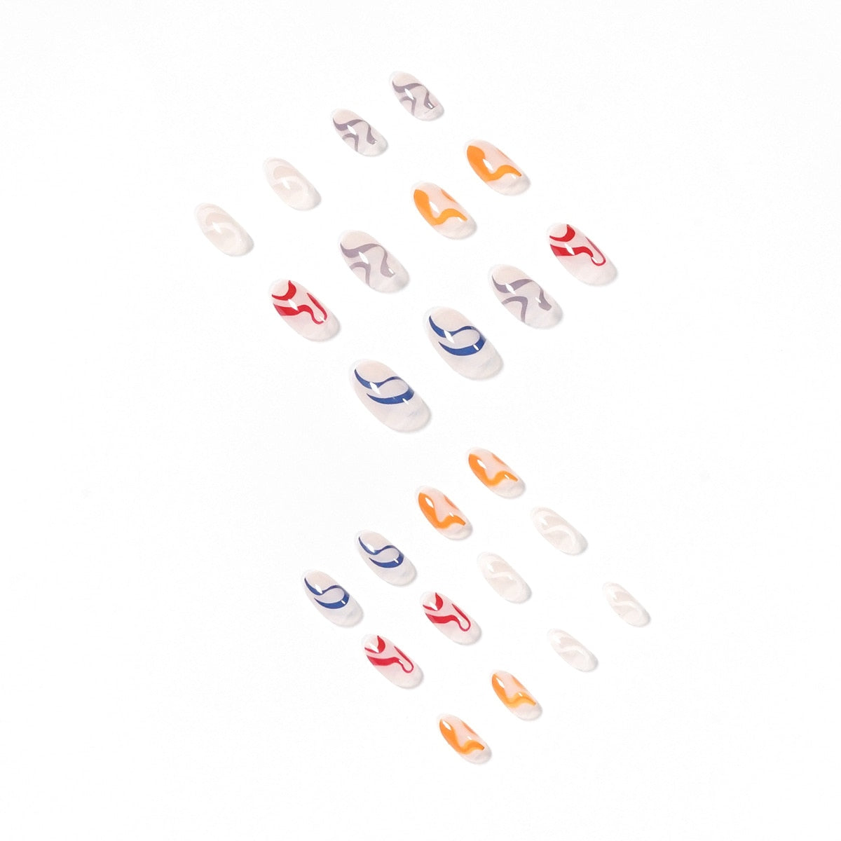 Fake Nails Line Art Multicolored Waves Full Cover Fake Nails DIY Glue Press On Nails Nail Supplies For Professionals-Nail Inspo