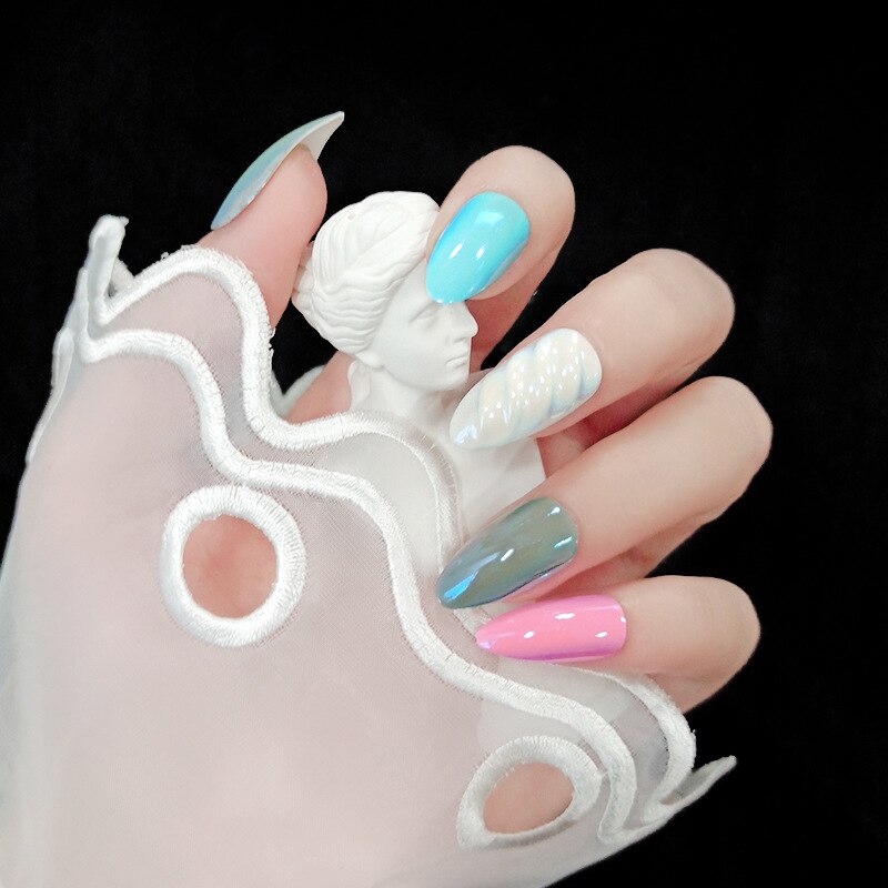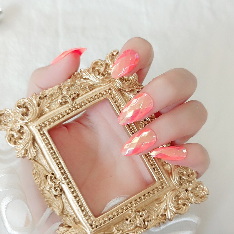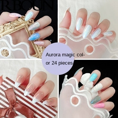 Fake Nails Nail Art Tips Press on False Tipsy withGlue Coffin Stick Designs Display Set Full Cover Artificial Detachable Mirror-Nail Inspo