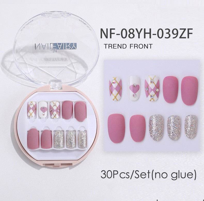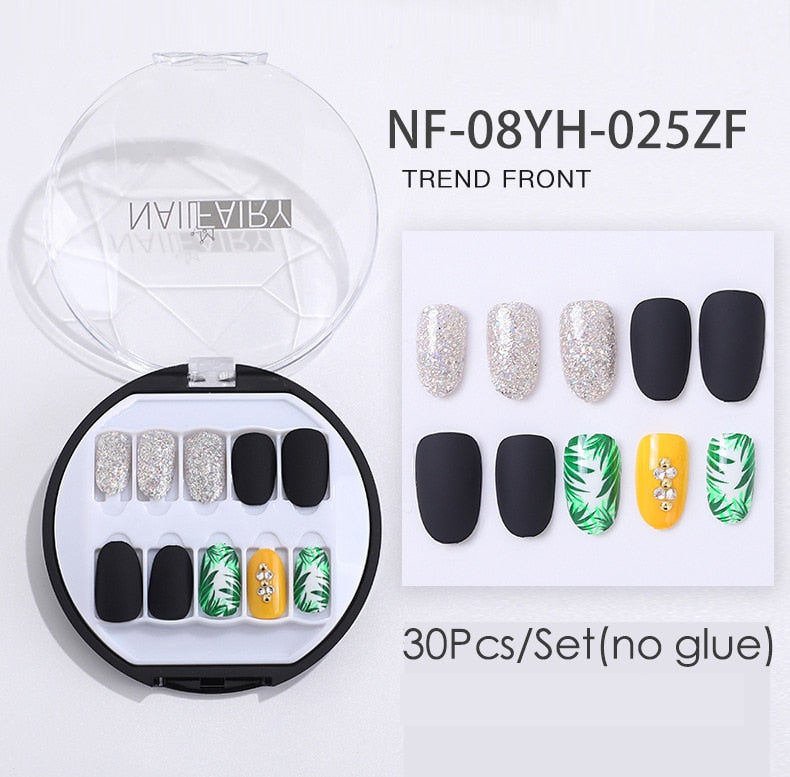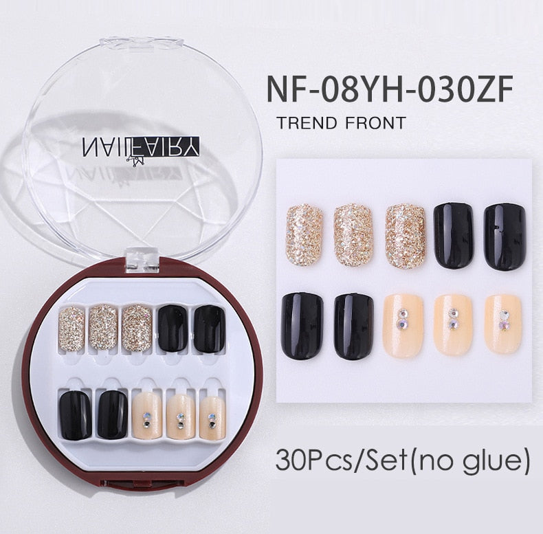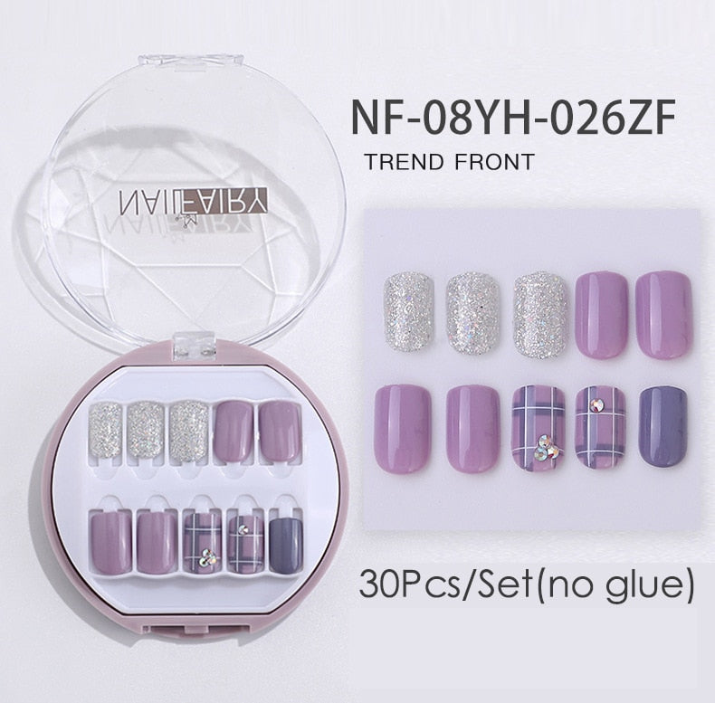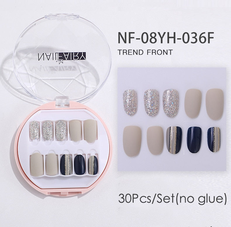 Fake Nails Press Coffin False with Glue Set Packaging Full Artificial Short Kiss Detachable Stick Designs Art Tipsy Cover Box-Nail Inspo