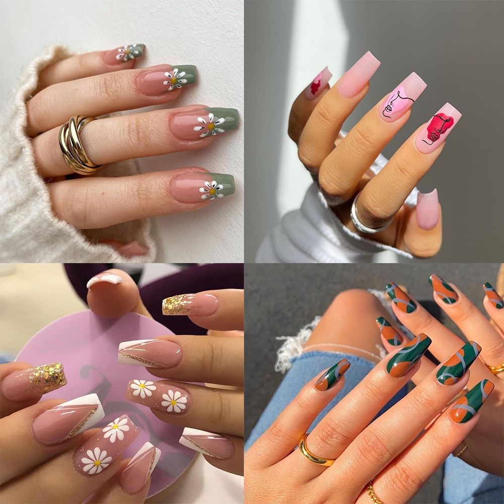 Fake Nails Press On for women White Flower Designs Artificial Nail Tips Full Cover Acryl False Nails Manicure Nail Accessory-Nail Inspo
