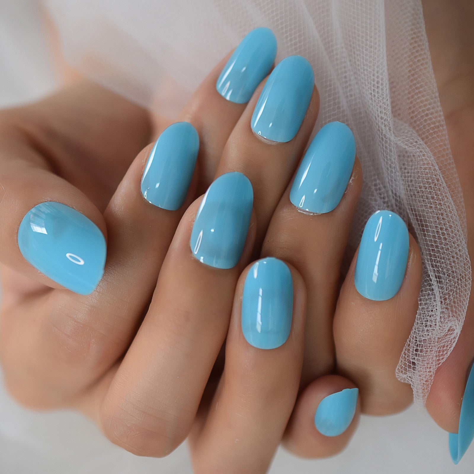 Fake Nails Pure Color Full Cover Medium Length False Nails Press On Tips Square Artificial Nail Kit Manicure DIY Home-Nail Inspo