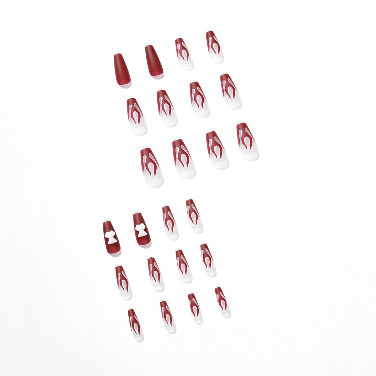 Fake Nails Red Flame Small Bear Full Cover Fake Nails DIY Glue Press On Nails Nail Supplies For Professionals-Nail Inspo