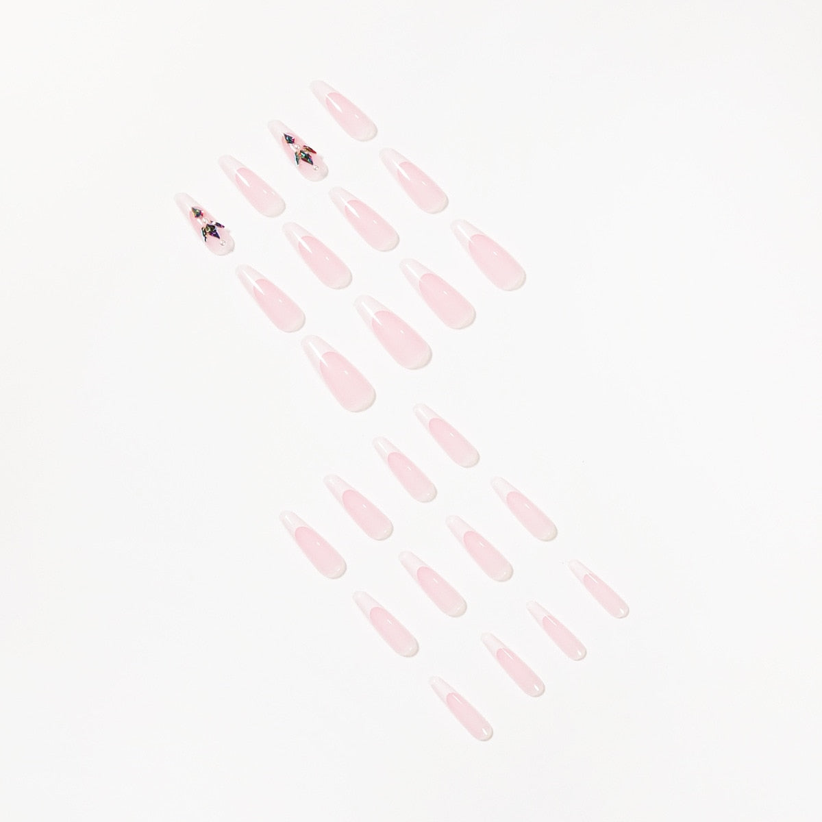 Fake Nails White French Fancy Color Diamonds Full Cover Fake Nails DIY Glue Press On Nails Nail Supplies For Professionals-Nail Inspo