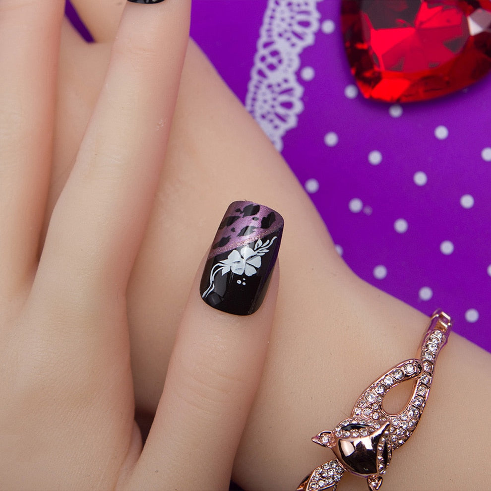 - Choose a suitable size of adhesive stickers or nail glue for your nails and stick it on your nails.