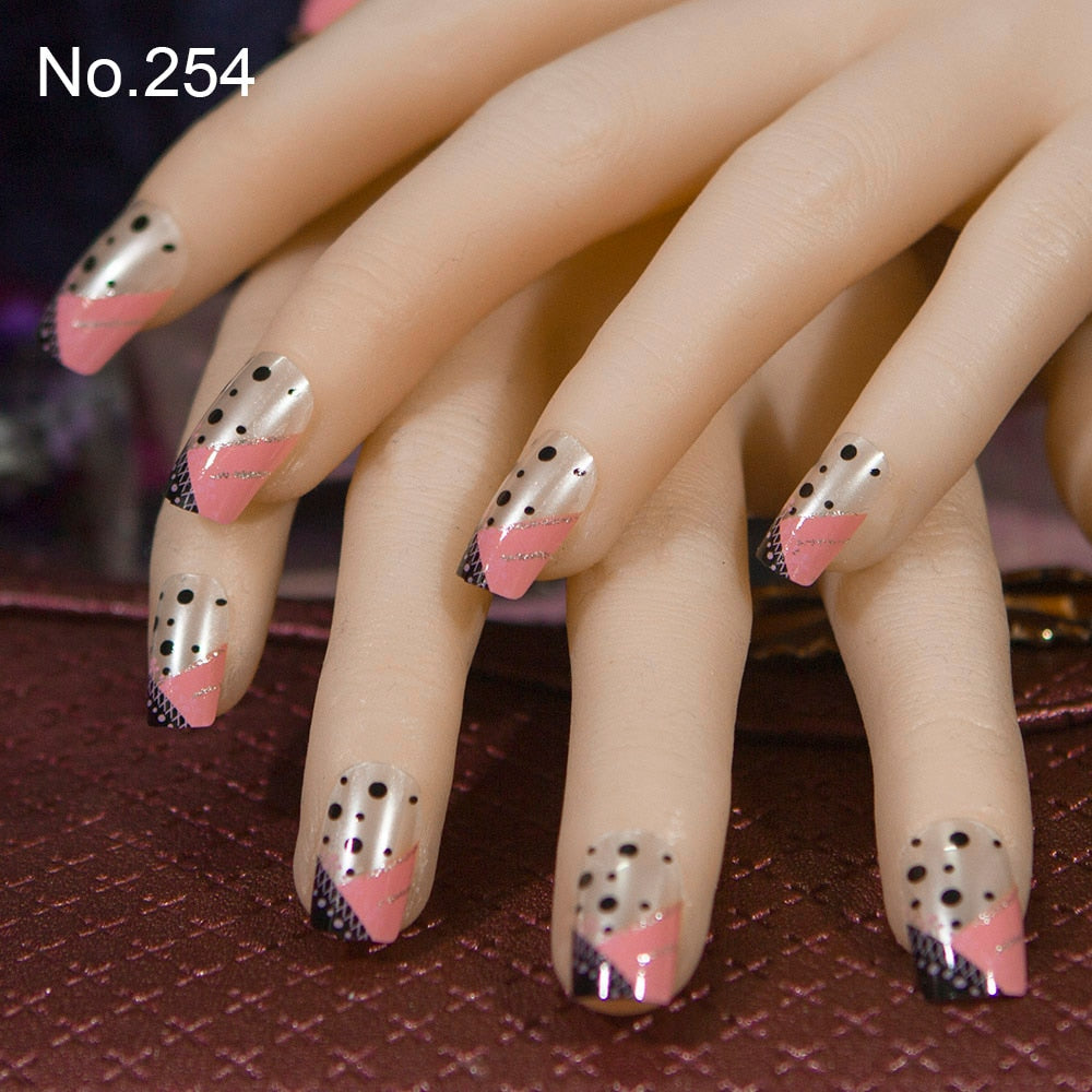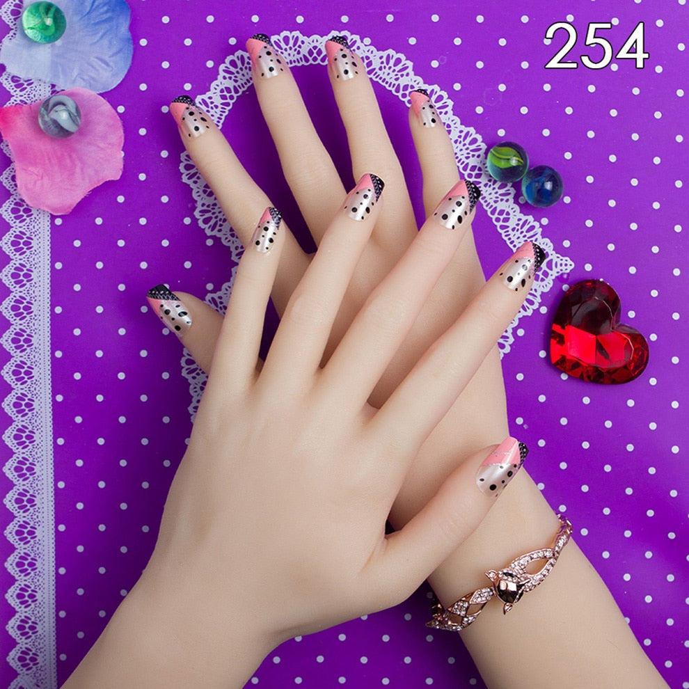 Fashion 24pc/set 10 Sizes Fake Nails Full Cover French False Nail Tips With Double-Sided Nail Adhesive Sticker 254-Nail Inspo